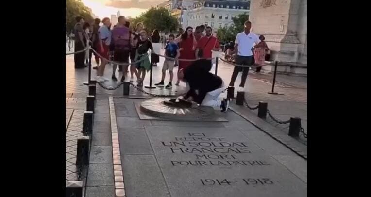 Sur une vidéo relayée mardi par plusieurs comptes sur X, un homme s'accroupit près de la flamme du Soldat inconnu, sous l'Arc de Triomphe à Paris, pour y allumer une cigarette et repart tranquillement, sous le regard de quelques touristes.