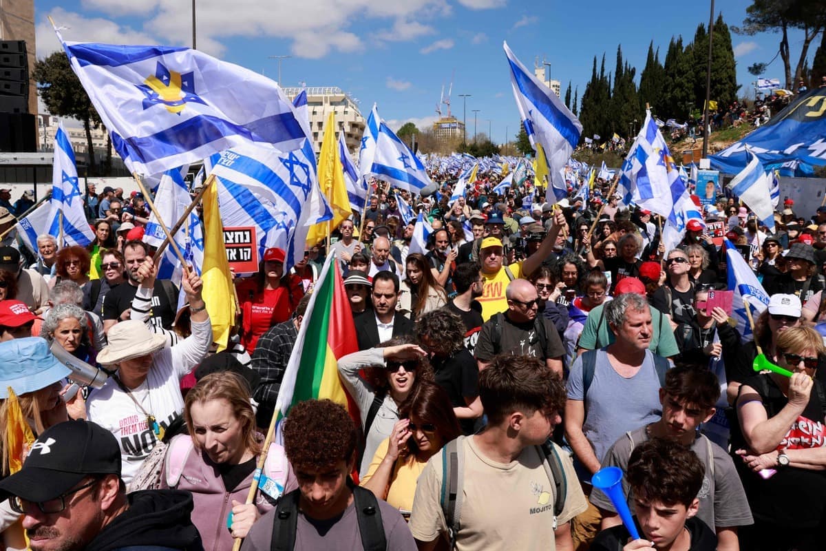 Les manifestants accusent aussi Benjamin Nétanyahou de profiter de la guerre contre le Hamas pour faire taire les critiques internes et concentrer le pouvoir dans les mains de l'exécutif. Un projet de réforme judiciaire, visant à rogner les prérogatives de la Cour suprême, avait provoqué début 2023 une mobilisation monstre qui avait divisé le pays.