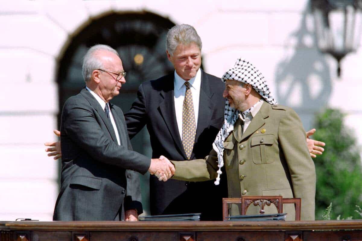 L'image est entrée dans les livres d'histoire: le 13 septembre 1993, sous le regard du président américain Bill Clinton, le chef palestinien Yasser Arafat et le Premier ministre israélien Yitzhak Rabin se serrent la main sur le gazon de la Maison-Blanche.