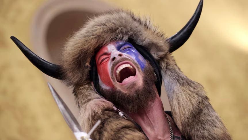 De son vrai nom Jacob Chansley, l’homme qui avait marqué les esprits avec son casque cornu, son visage peint en bleu-blanc-rouge et son torse nu est l’une des 1500 personnes à avoir reçu le pardon présidentiel dès le premier jour en poste de Trump.