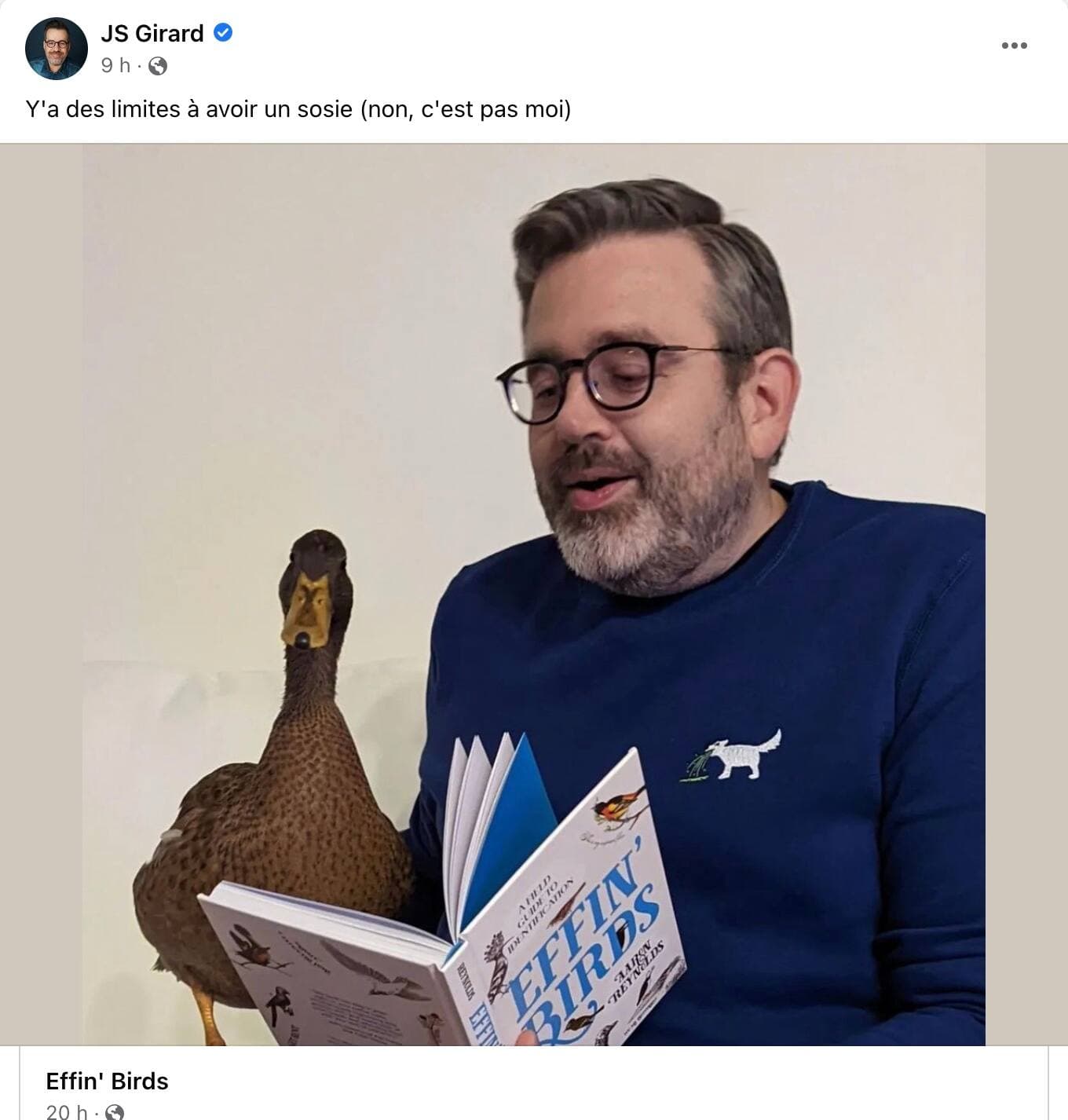 «Y’a des limites à avoir un sosie (non, c’est pas moi)» peut-on lire en légende d’une photo de quelqu’un qui pourrait facilement être lui.