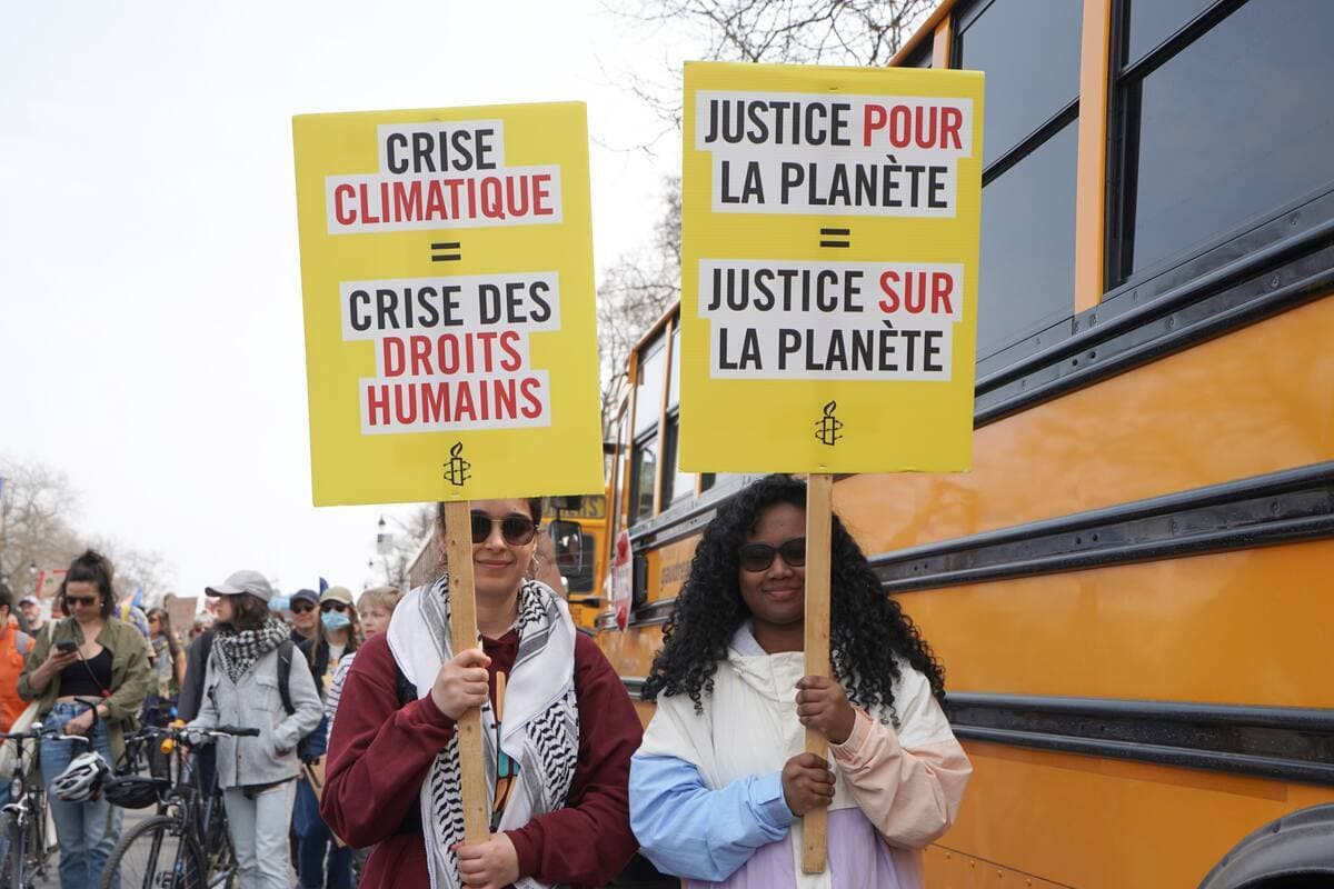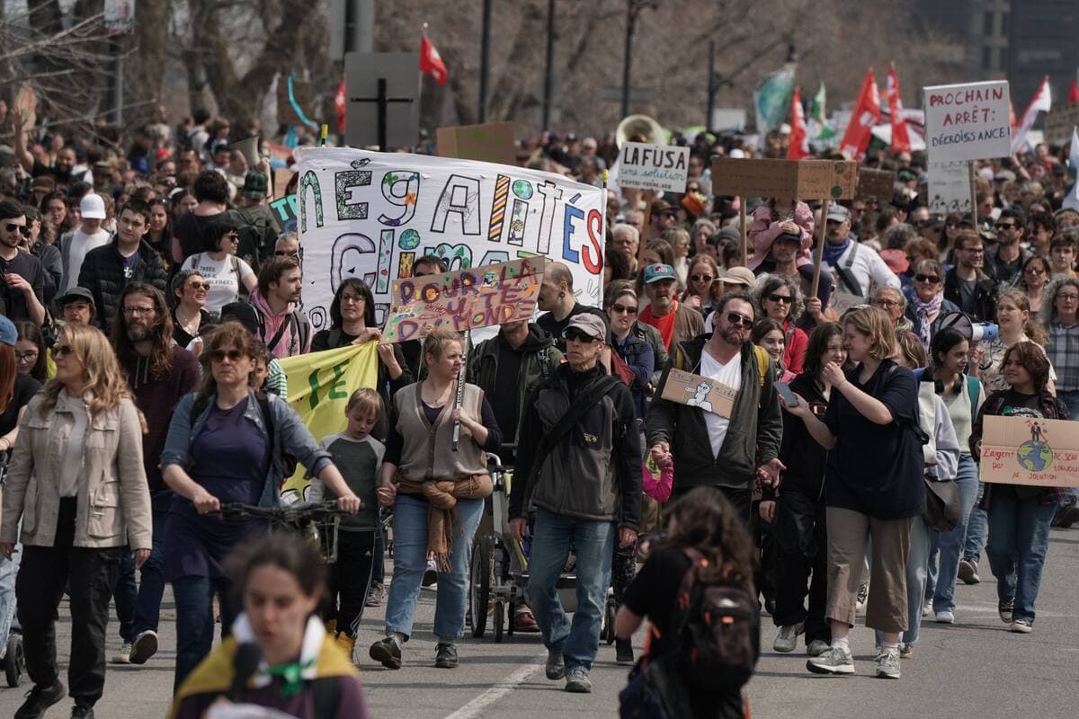 Quelques milliers de personnes sont sorties dans les rues de Montréal pour le Jour de la Terre, réclamant plus d’investissements pour se sortir de la crise climatique.