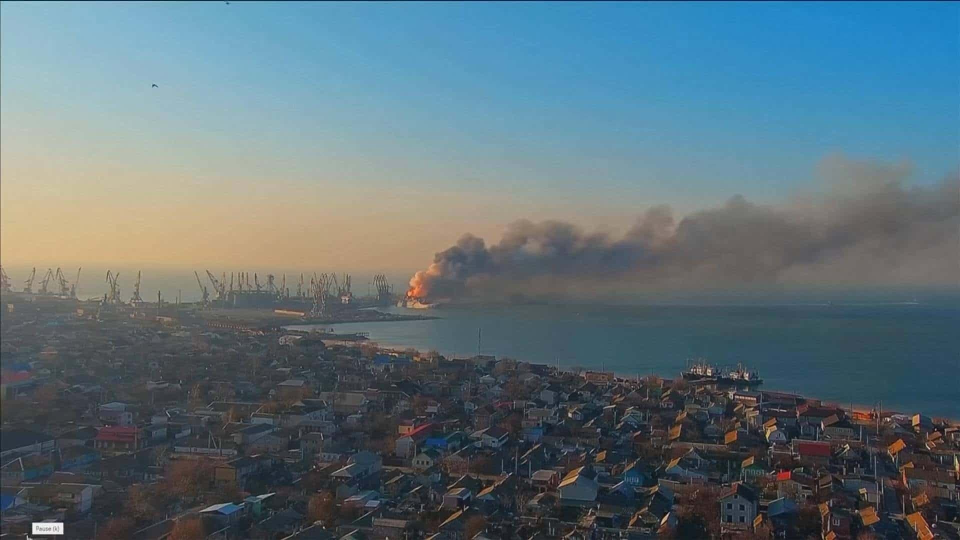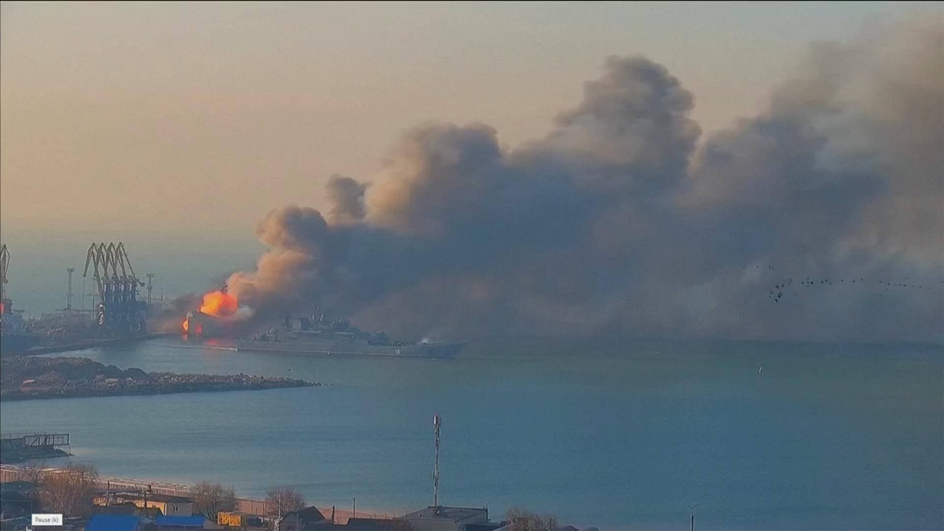 «Le navire de transport de troupes Orsk a été détruit dans le port occupé de Berdiansk. Gloire à l'Ukraine!» a écrit la marine dans un message sur son compte Facebook, accompagné de trois photos: un gros plan du navire non endommagé, et deux photos montrant, de loin, de la fumée dans le port et un bateau en feu, sans qu'on y distingue clairement le bateau.