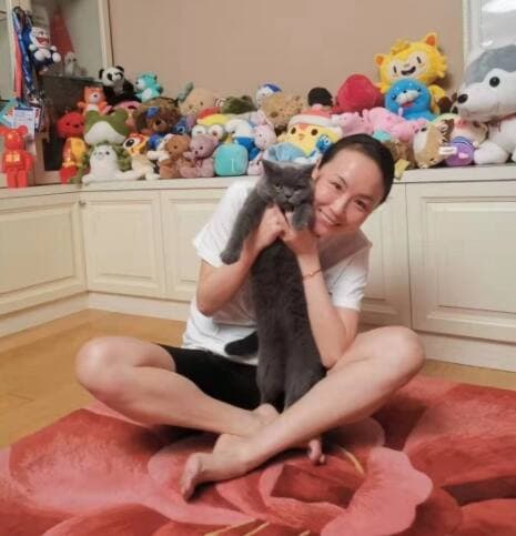 Un des clichés montre la joueuse souriante avec un chat dans les bras dans ce qui semble être son domicile. Une autre photo montre un selfie de Peng Shuai avec une figurine de Kung Fu panda, film d’animation pour enfants.