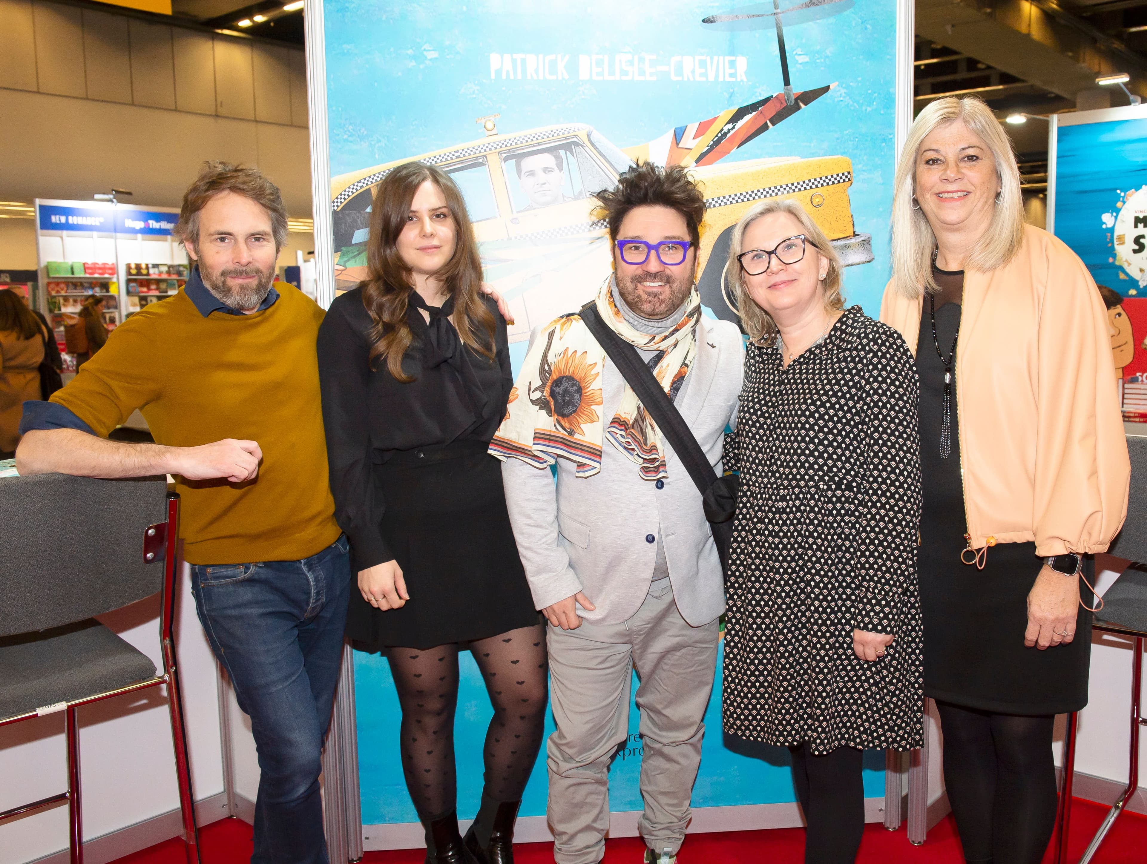 Martin Balthazar, du Groupe Ville-Marie Littérature, est en compagnie de Catherine Dupont-Gagnon Crypto.Québec, autrice du livre On vous trompe, de Patrick Delisle-Crevier, auteur de Mon père aux îles Moukmouk, de Judith Landry, directrice générale éditions secteur livres Québecor, et de Lyne Robitaille, vice-présidente principale, Journaux, Livres et Magazines Québecor.