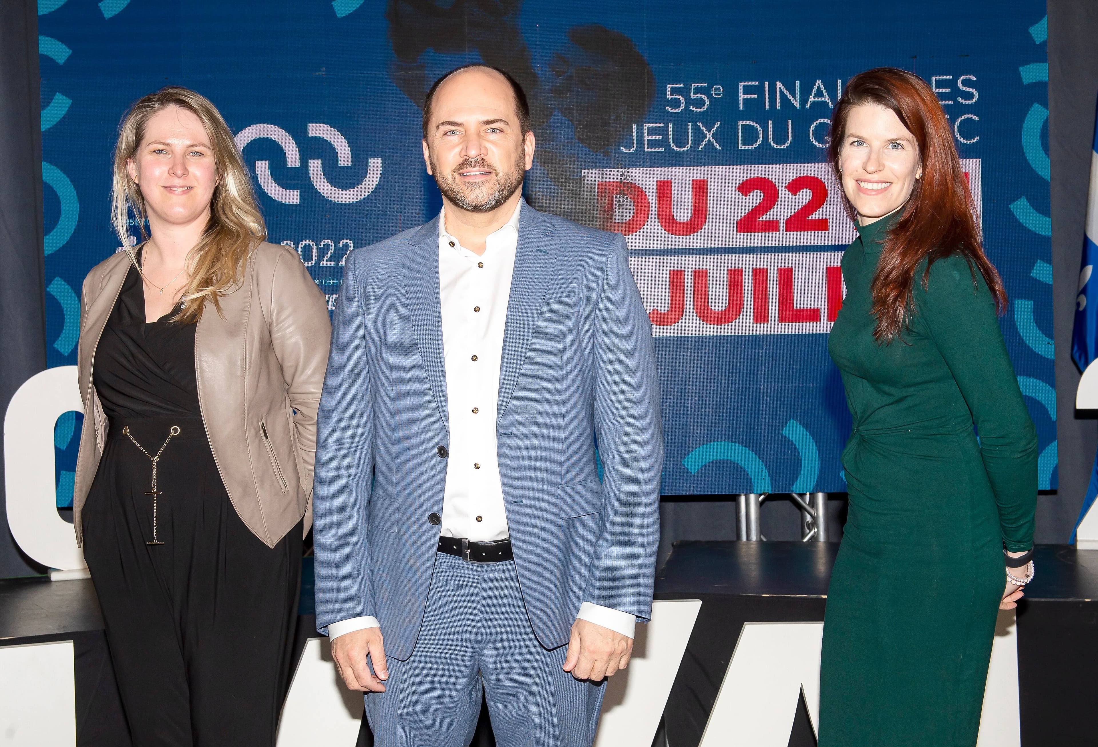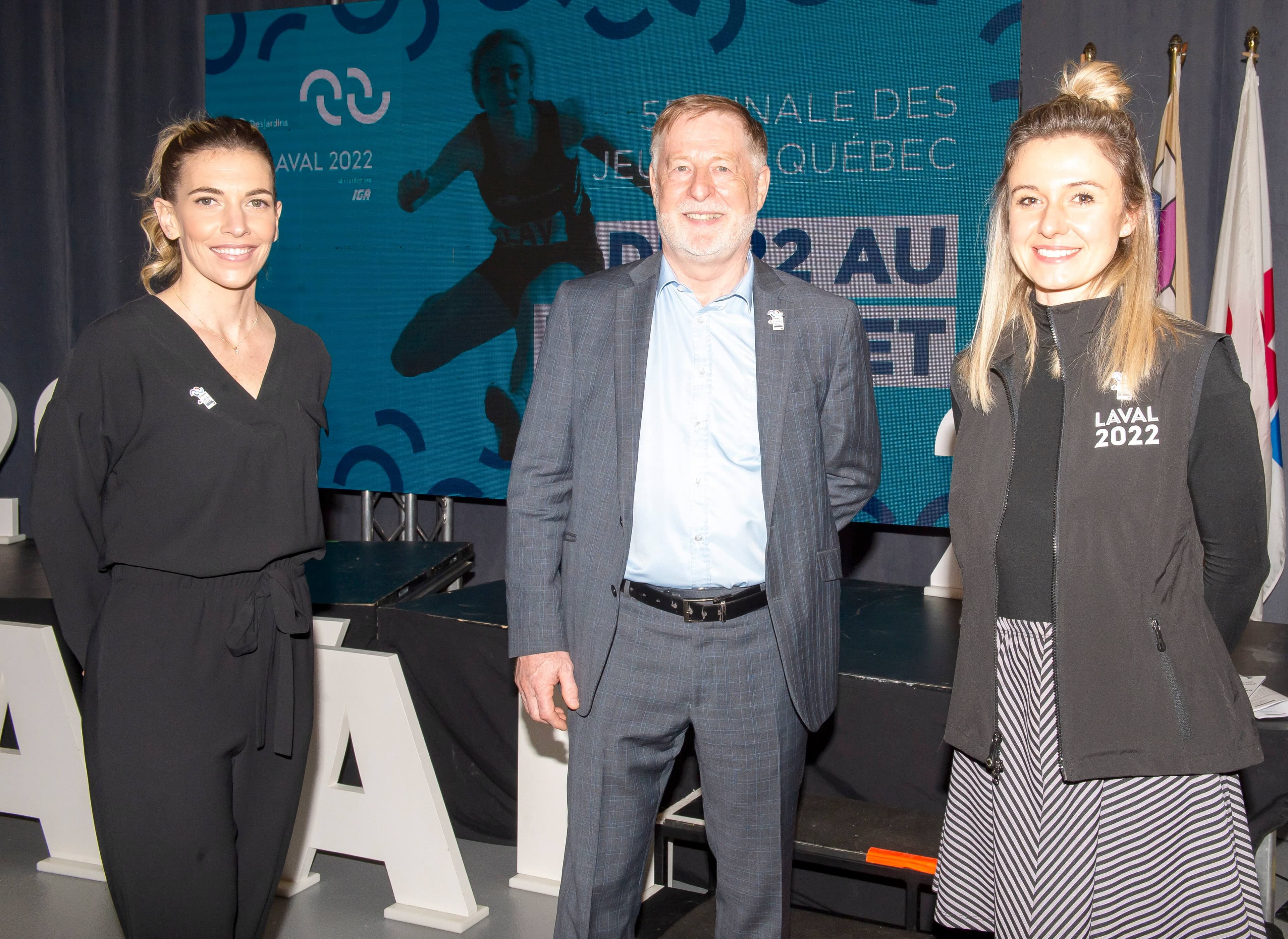 L’ancien maire de Laval, Marc Demers, le grand responsable de la venue des Jeux du Québec dans la ville est entouré d’Émilie Duquette, coordonnatrice des communications, et de Stéphanie Leblond, directrice des communications et des partenariats.