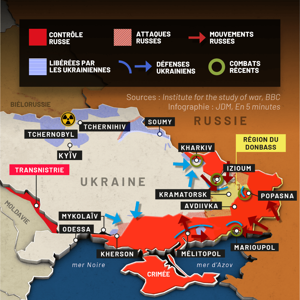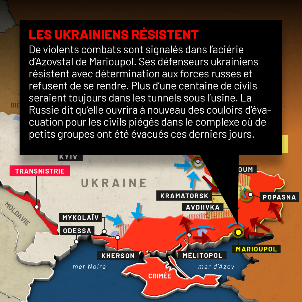 Les renseignements militaires ukrainiens croient que Moscou aurait déjà engagé le processus de mobilisation générale en Russie, qui serait annoncée le 9 mai par une déclaration de guerre contre l’Ukraine.