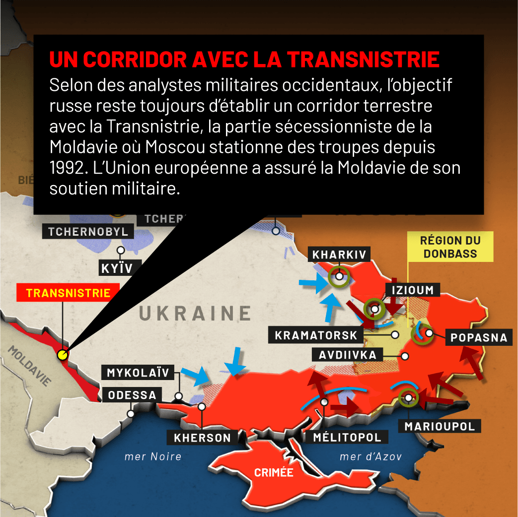 Dans le sud-ouest de l’Ukraine, la Russie tente toujours de pousser vers Odessa dans le but de couper l’accès de l’Ukraine à la mer Noire, mais les avancées de ses forces armées sont bloquées à Mykolaïv malgré des attaques répétées.