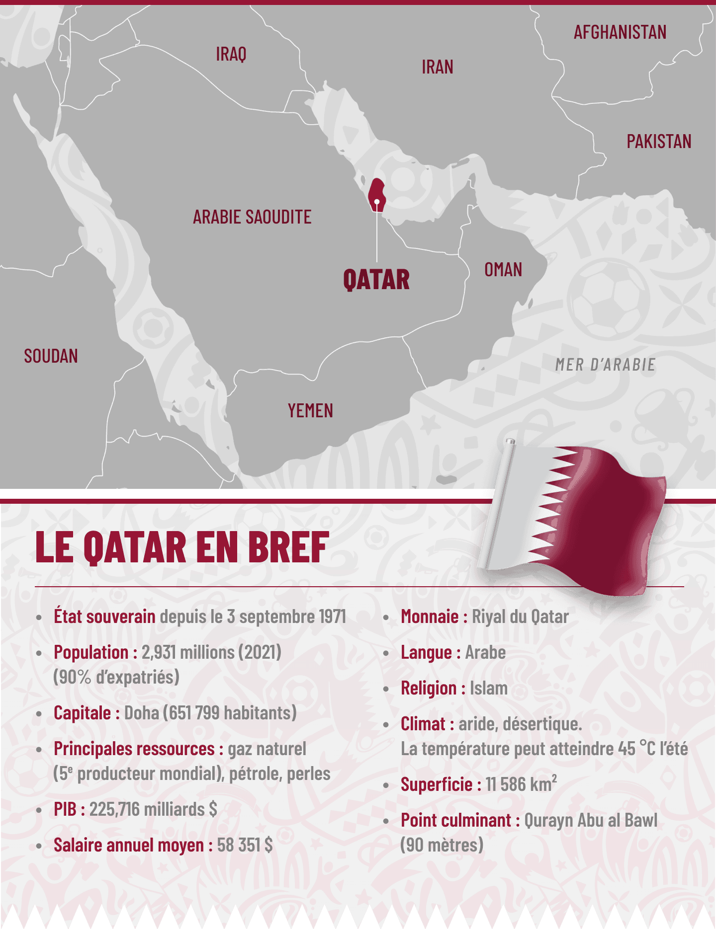La vie au Qatar n’a rien en commun avec celle au Canada. Il y a un monde de différences entre les deux pays, qui sont à plusieurs égards à des années-lumière, que ce soit la principale religion, certaines valeurs, le climat, les relations amoureuses, la mode, etc. En voici quelques exemples.