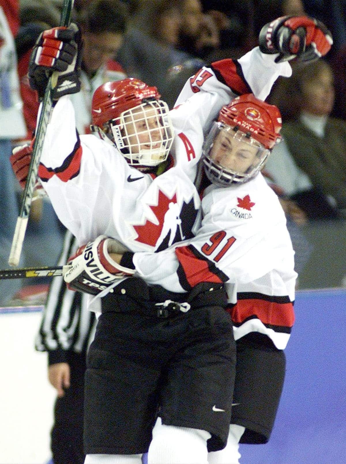 Caroline Ouellette et Kim St-Pierre ont croqué dans leur médaille d'or aux Jeux olympiques de Salt Lake City en 2002.