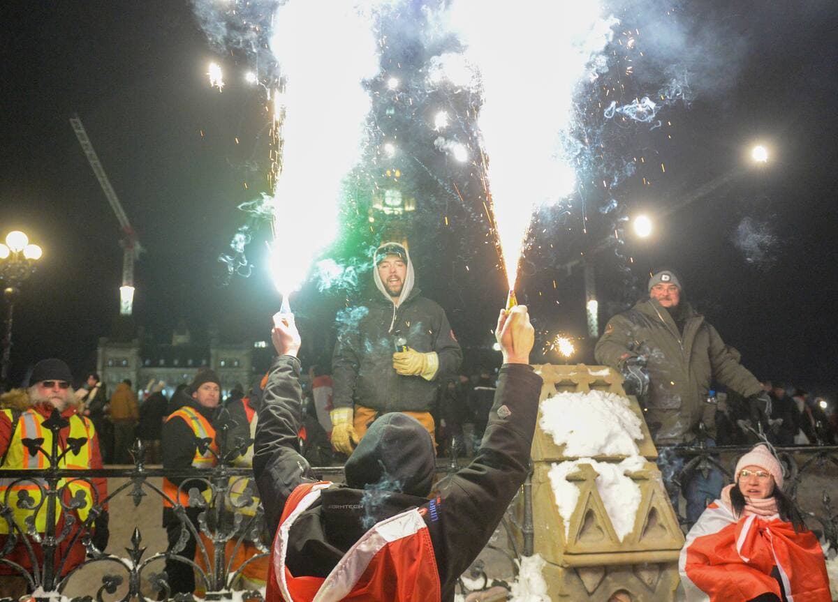 Les manifestants tirent des feux d’artifice au milieu des camions #FreedomConvoy2022 #JDM pic.twitter.com/MrWwM18vWs