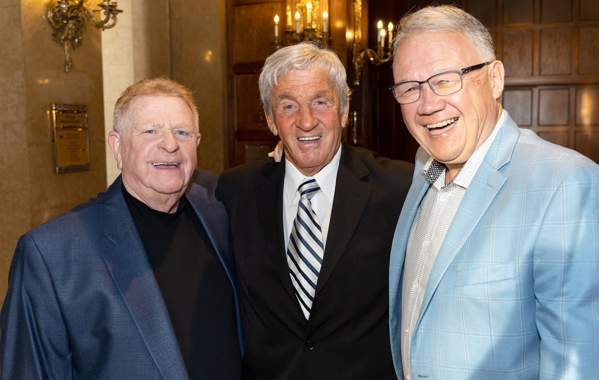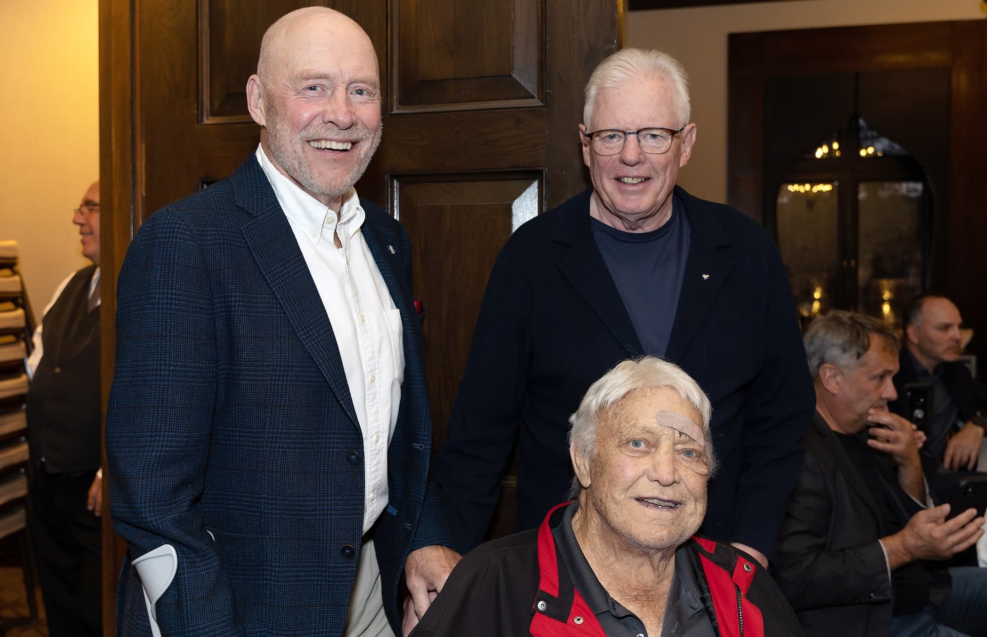 André Lacroix, membre du Temple de la renommée de l’Association mondiale de hockey, est entouré des anciens Nordiques Michel Parizeau et Michel De Guise.