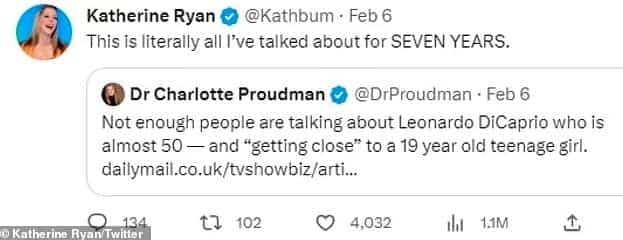 «C’est tout ce dont je parle depuis SEPT ANS», a-t-elle écrit, en réponse à un tweet qui dénonçait la relation entre DiCaprio et Polani.