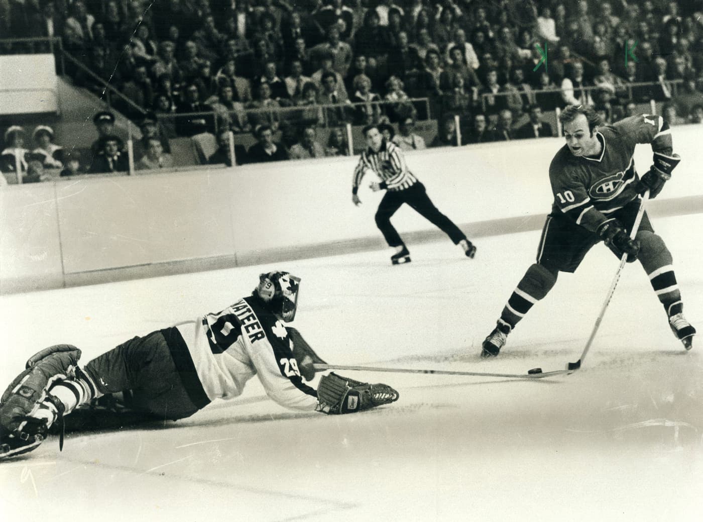Guy Lafleur et le gardien Mike Palmateer des Maple Leafs de Toronto Dick Darrell / Toronto Star via Getty Images