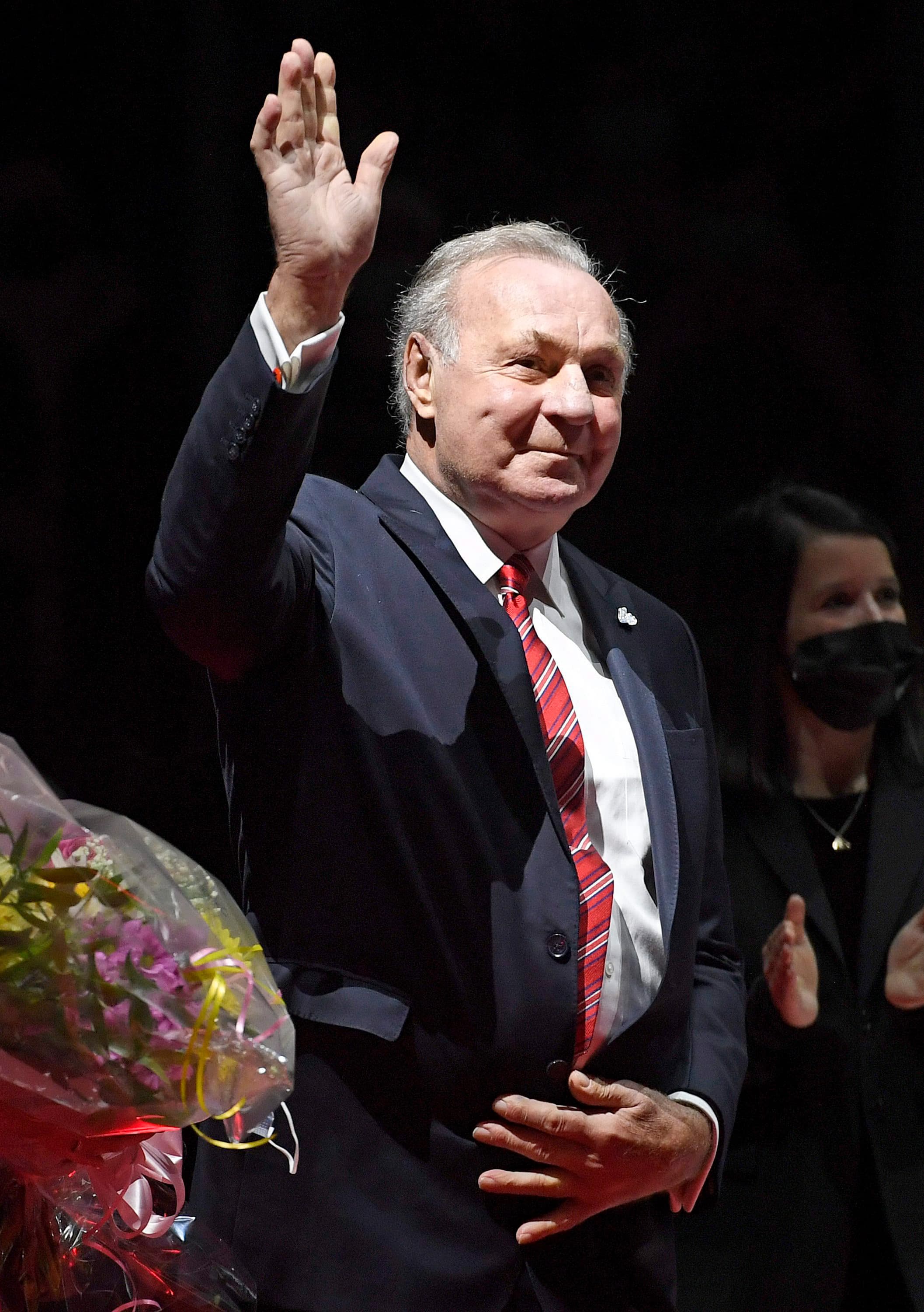 Guy Lafleur et sa bannière dans le cadre de la soirée du retrait du numéro 4 de Guy Lafleur au Centre Slush Puppie de Gatineau le mercredi 29 septembre 2021 MARTIN CHEVALIER / LE JOURNAL DE MONTRÉAL
