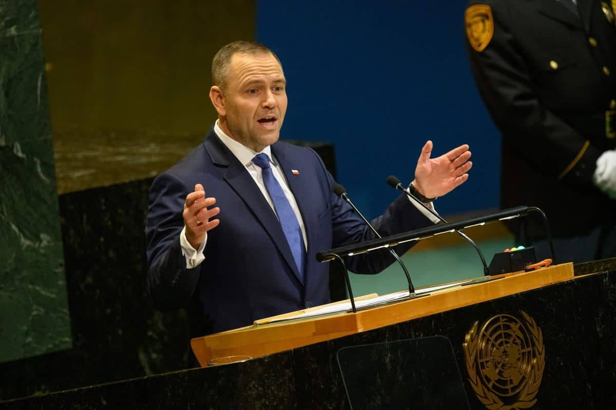 «La Pologne réagira toujours de façon adéquate, et elle est prête à défendre son territoire [...] Le peuple polonais, ainsi que les pays d'Europe centrale et de l'est, n'auront pas peur des drones russes», a-t-il assuré à New York.