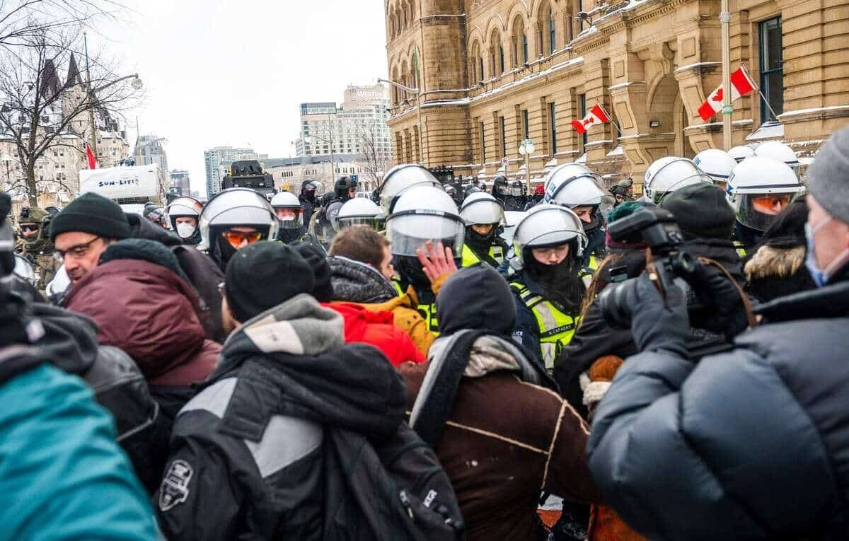 En début de soirée «les manifestants frappaient les policiers avec des armes», a indiqué la police d’Ottawa. Ceci, a déclaré la police, a justifié «le déploiement d'armes à impact de moyenne portée (ARWEN) pour arrêter les actions violentes des manifestants». Ces armes non létales tirent des balles en caoutchouc.