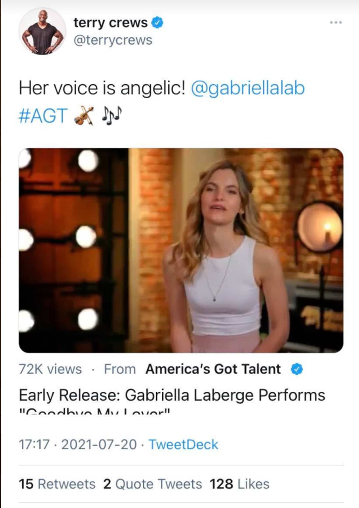 Ce n’était pas une surprise. On savait déjà que Gabriella avait séduit les juges puisque son audition avait été mise en ligne, lundi matin, sur la page Instagram d’America’s Got Talent (AGT), mais on ignorait ce qu’ils allaient lui dire après sa prestation.