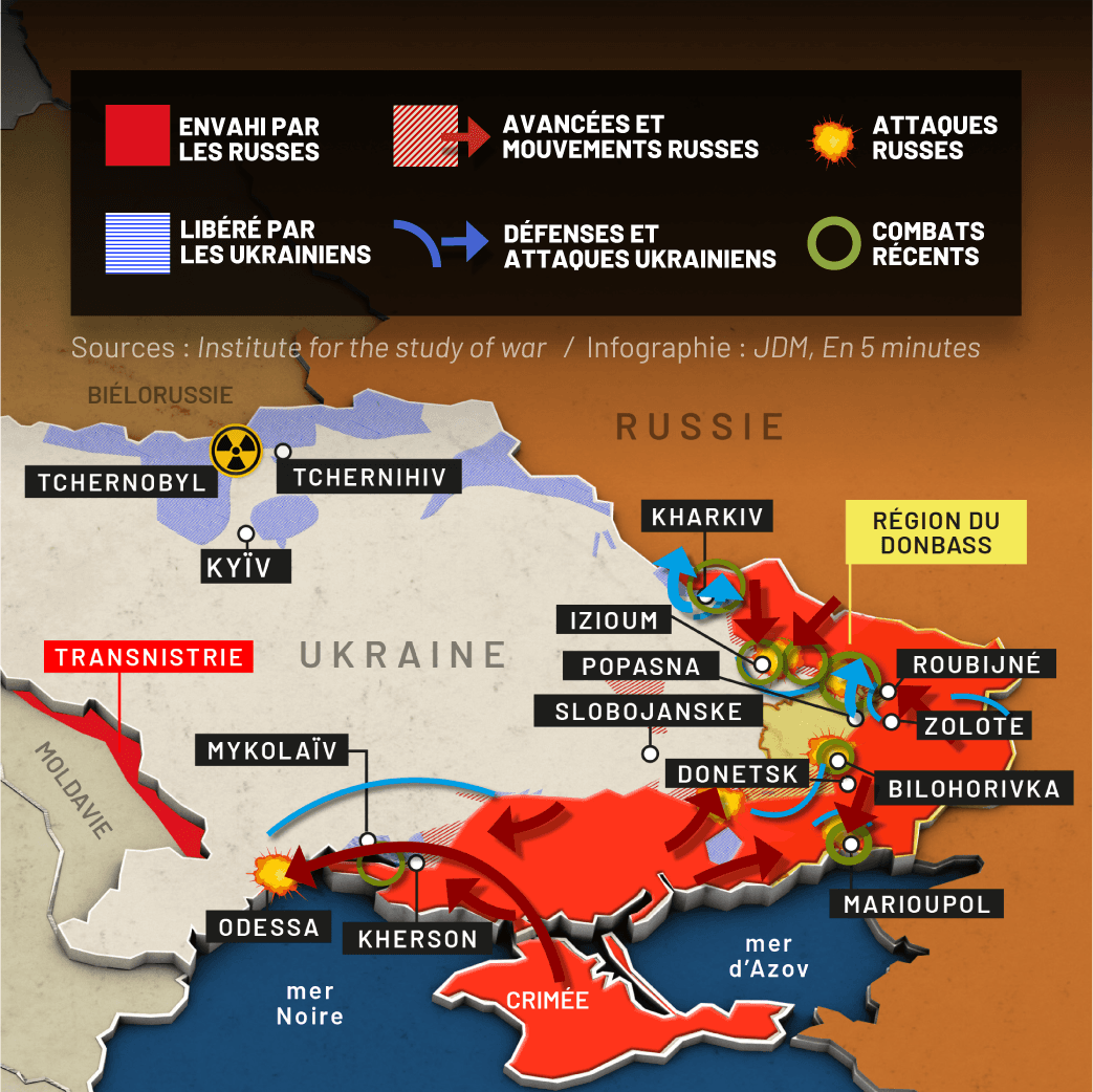 On s’attend également à de nouveaux assauts dans la région de Kherson, essentiellement pour empêcher les déplacements des troupes ukrainiennes et diminuer les risques de contre-attaques.