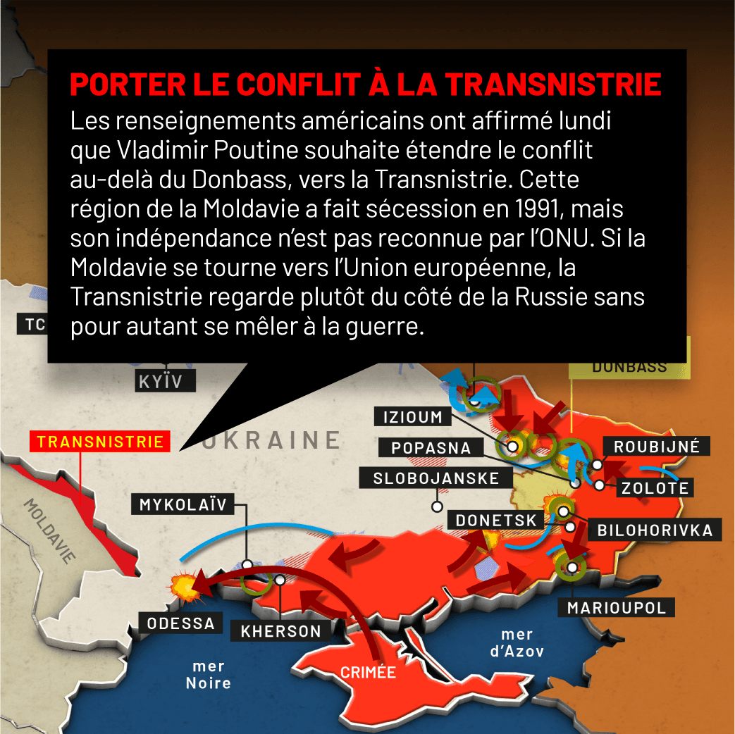 Pendant que les troupes s’affairent, les dirigeants russes envisageraient maintenant de regrouper Donetsk et Louhansk au sein d’une même entité appelée « République du Donbass ».