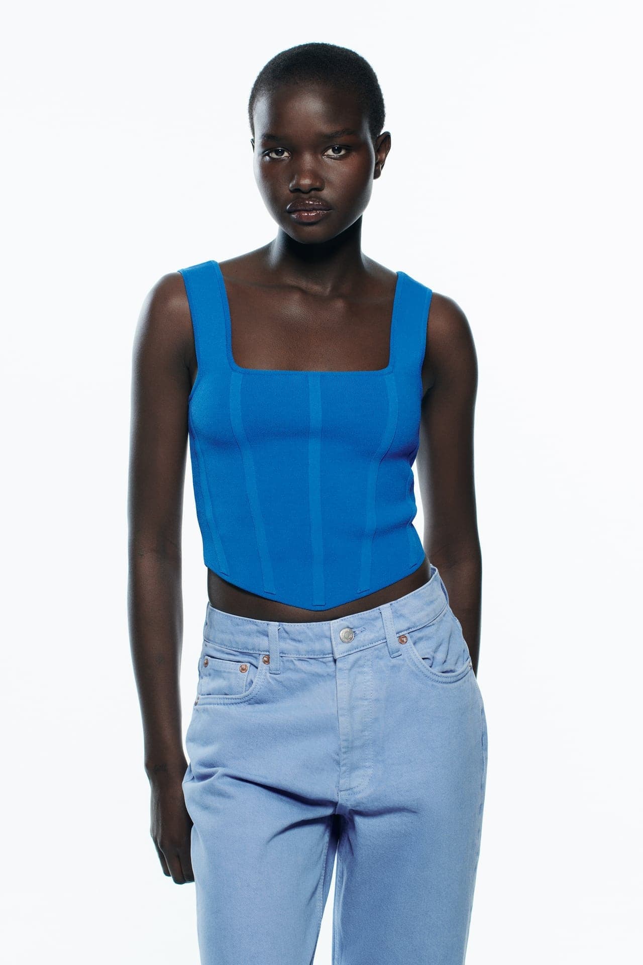 La tendance du corset est sans contredit parmi les plus populaires à l'été 2022. On le voit autant sur les célébrités que les instagrameuses mode, qui l’agencent avec un pantalon évasé, qui vient contraster avec le haut plus cintré. On l'adopte dans les coloris les plus tendance : les bruns et les beiges, ou encore dans des teintes printanières, comme le vert matcha et le lavande.