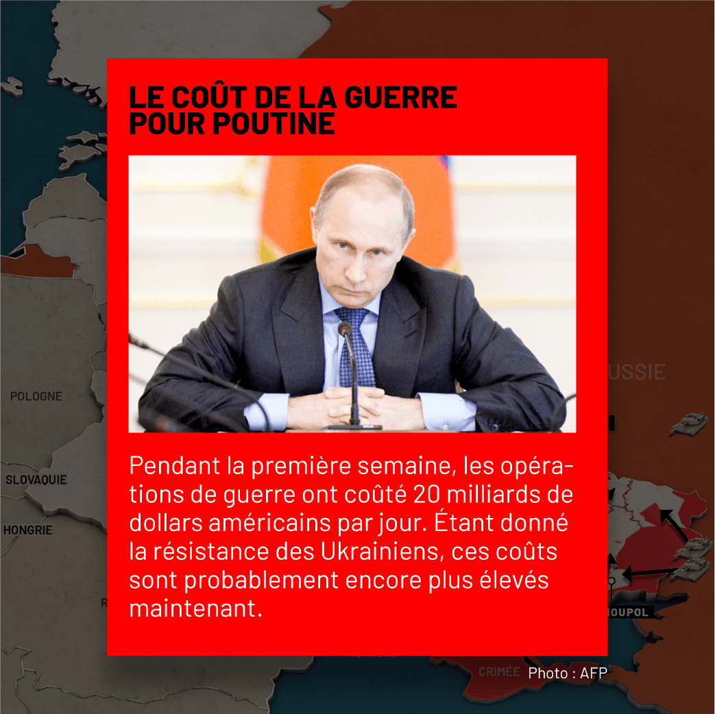 Le temps semble compté pour l’armée russe. La saison du dégel approche. Elle pourrait commencer dans une semaine. D’autre part, les coûts de la guerre sont très élevés.