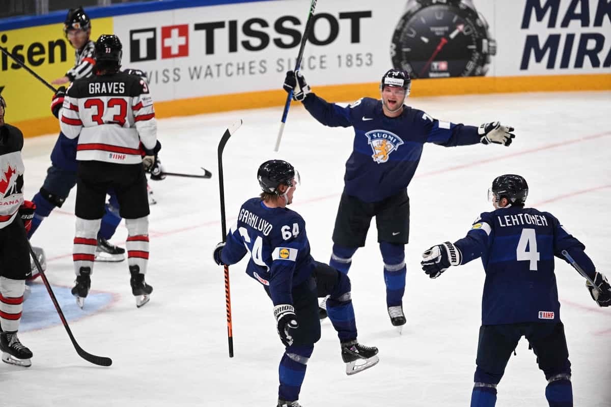 Mené par deux buts avec quelques minutes à jouer en troisième période, le Canada a marqué deux fois pendant que le gardien était au banc. Zach Whitecloud et Maxime Comtois ont tour à tour jeté une douche froide aux partisans finlandais réunis au Nokia Arena.