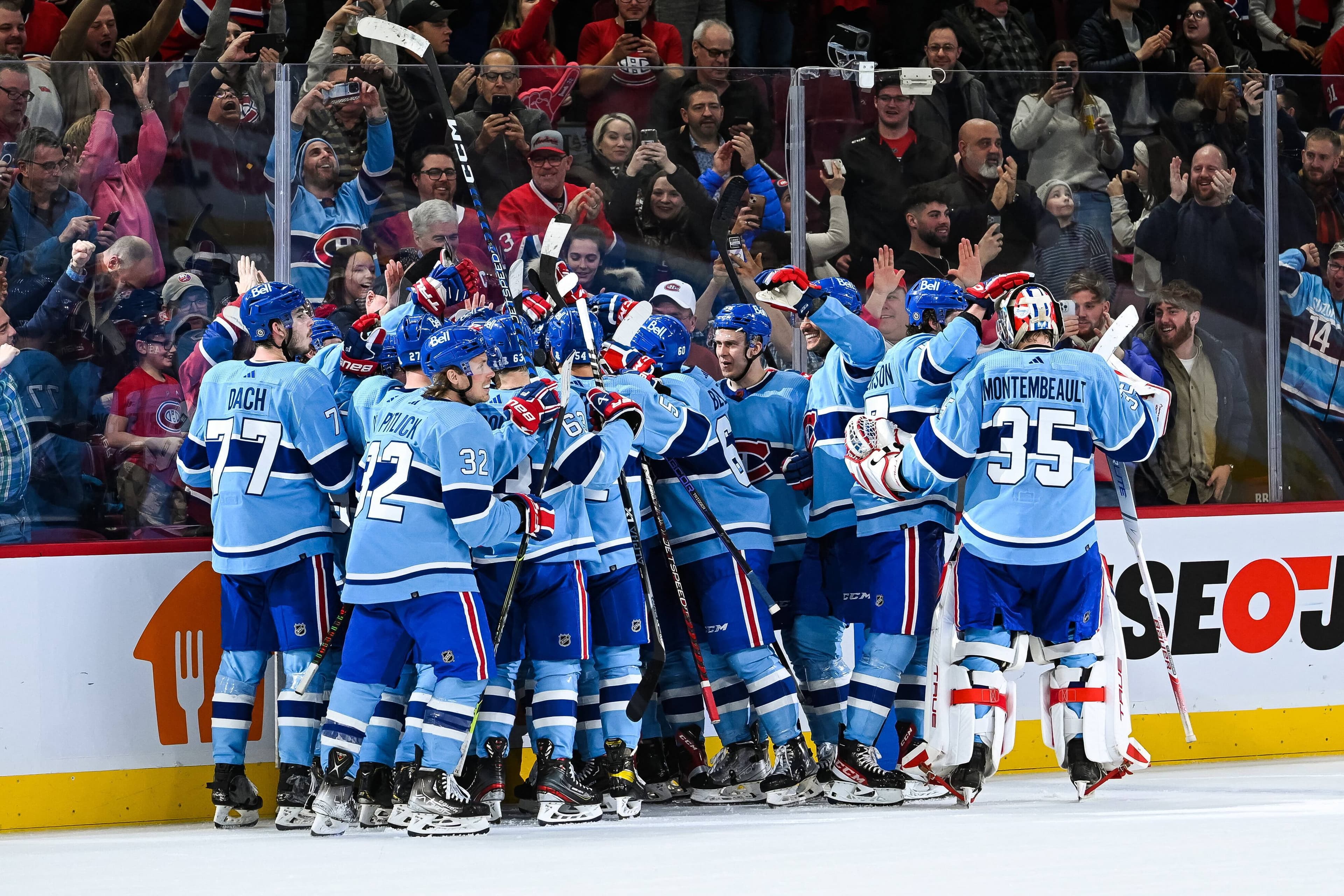 Le CH a signé une première victoire (1-6-1) avec ce chandail bleu poudre à son huitième et dernier match avec cet uniforme cette saison.