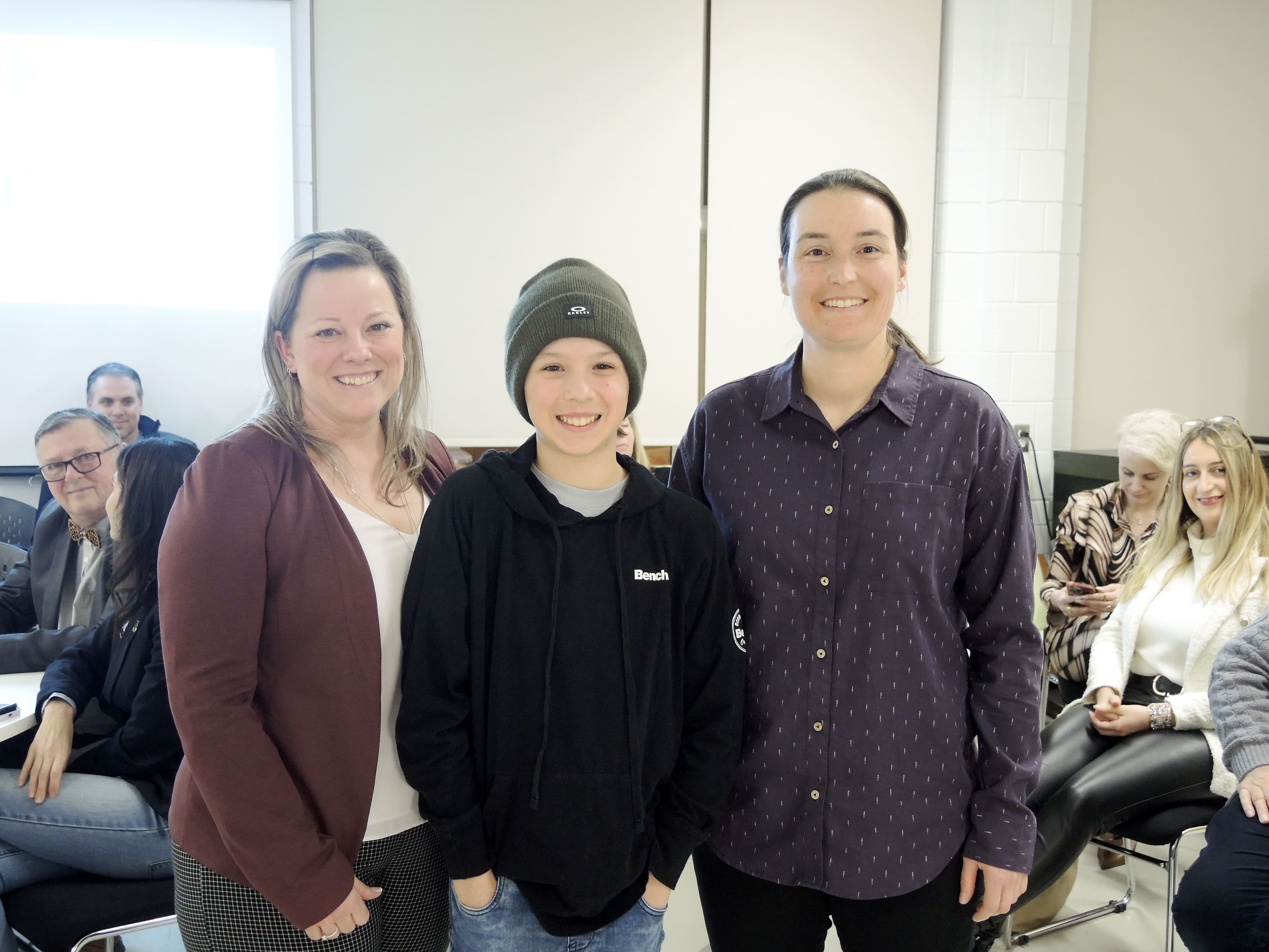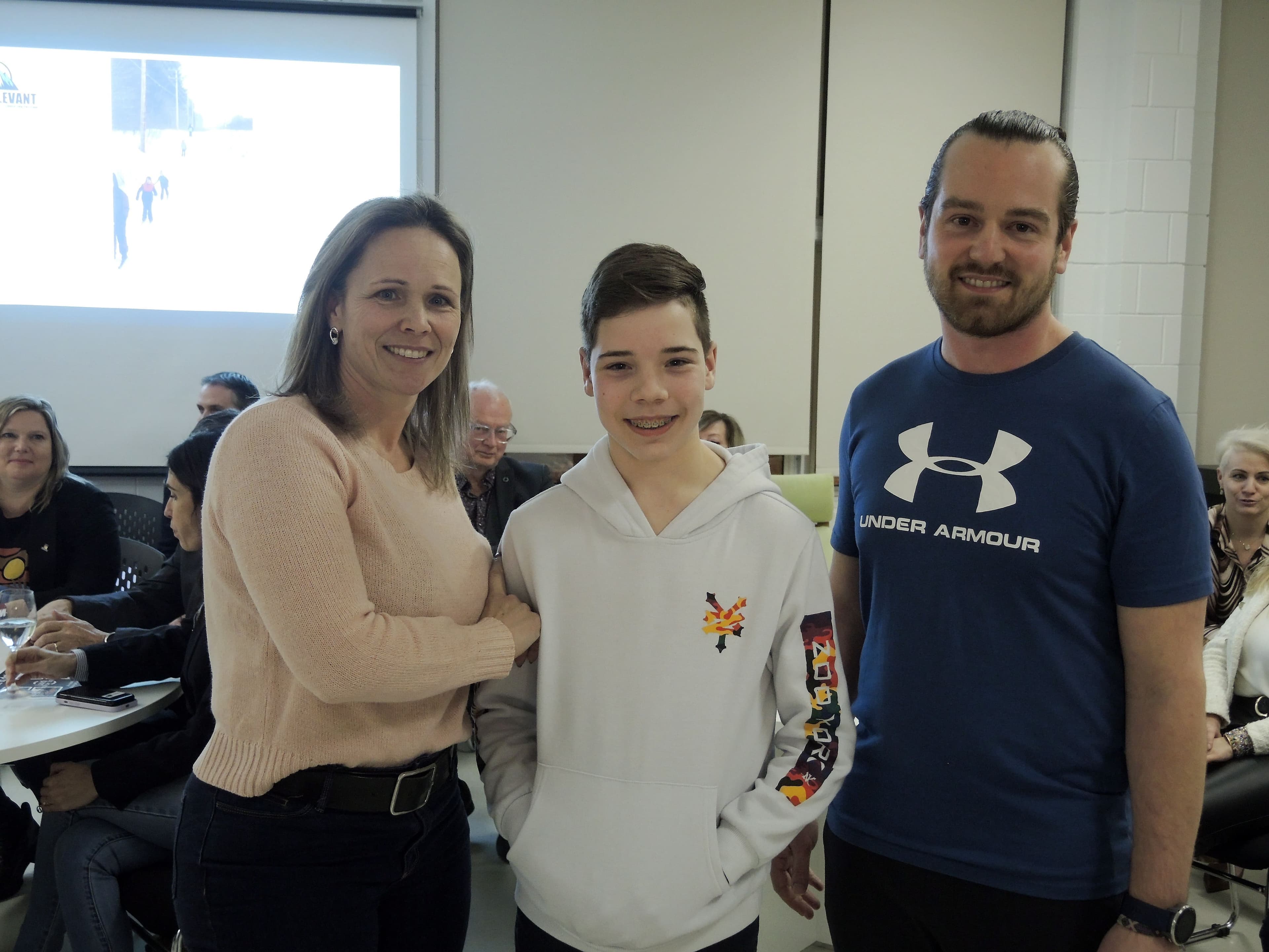 Sabrina Patenaude et son fils, Marek, élève de l’école du Coteau de Mascouche, qu’on voit en compagnie de David Rivard-Cartier, enseignant à l’école du Coteau de Mascouche, ont livré un message émouvant concernant l’importance du soutien de la FPES pour améliorer la qualité de vie des jeunes.