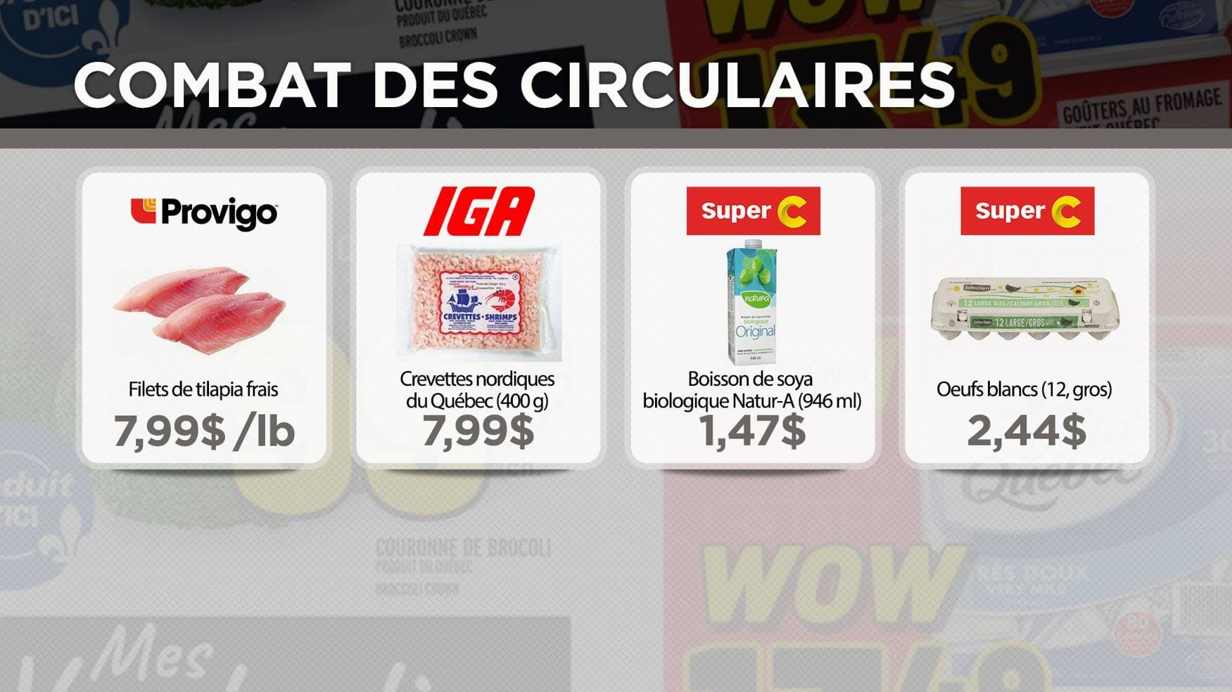 Pour sa part, Provigo offre le filet de tilapia frais à 7,99 $/ lb, et IGA, le paquet de 400 g de crevettes nordiques aussi pour 7,99 $.