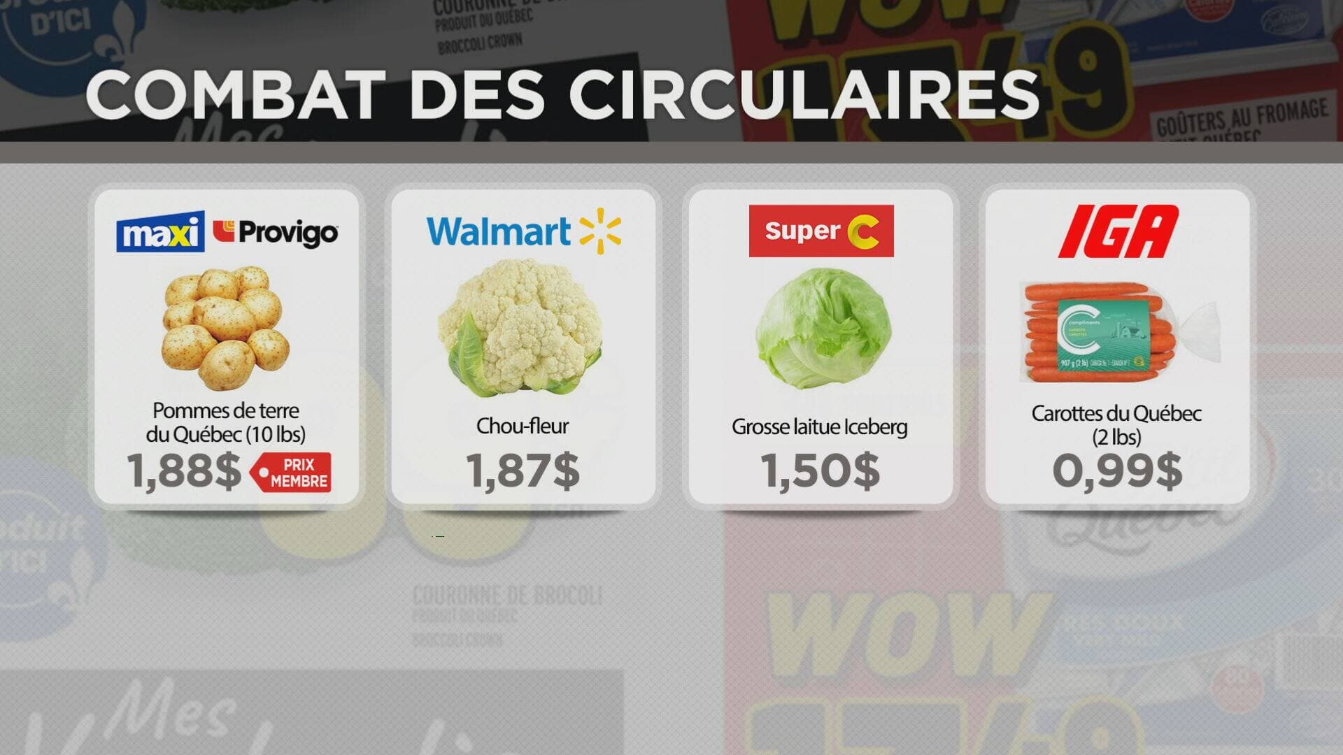 Dans le rayon des fruits et légumes, Walmart se démarque avec son chou-fleur à 1,87 $. M. Gagnon-Bérubé note qu’il est souvent rare de le voir à ce prix à ce temps-ci de l’année. Chez Maxi et Provigo, les pommes de terre du Québec sont à 1,88$ pour 10 lb, mais ce prix ne s’applique qu’aux membres. IGA offre par ailleurs des carottes du Québec à 0,99$ pour 2 lb.