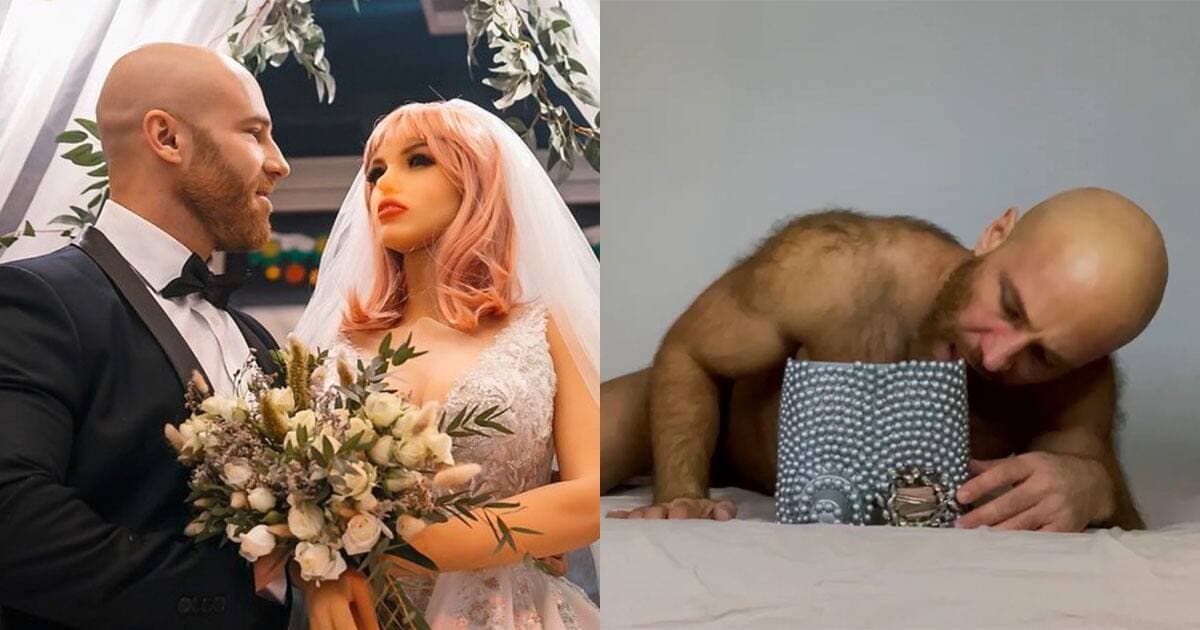 Le culturiste qui a marié sa poupée la trompe avec un objet étrange