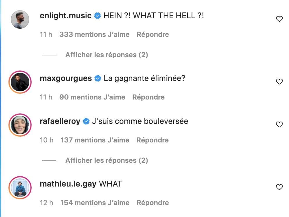 Sur Instagram, des personnalités bien connues du public, dont l'ancien Académicien Shayan Heidari, le coiffeur des star Max Gourgues, l'influenceuse et participante à La Voix Rafaëlle Roy et Mathieu Rheault de la cohorte de Star Académie 2022 ont exprimé leur incompréhension.