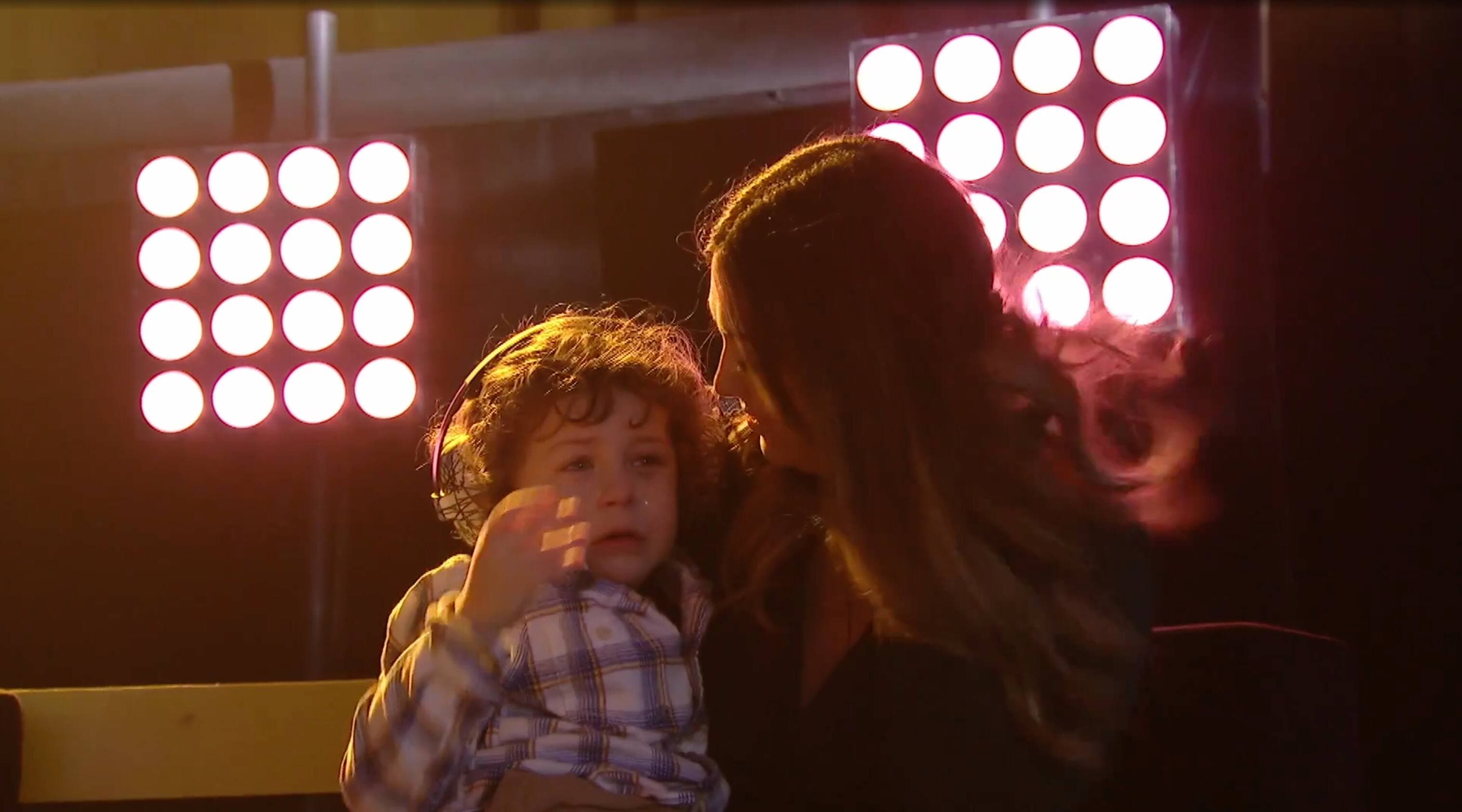 Cela fait maintenant près d'un mois que le petit n'a pu être auprès de son père, et le moins qu'on puisse dire, c'est qu'il est passé par toute la gamme d'émotions en le voyant chanter, des larmes au grand sourire, alors que sa maman le tenait dans ses bras.
