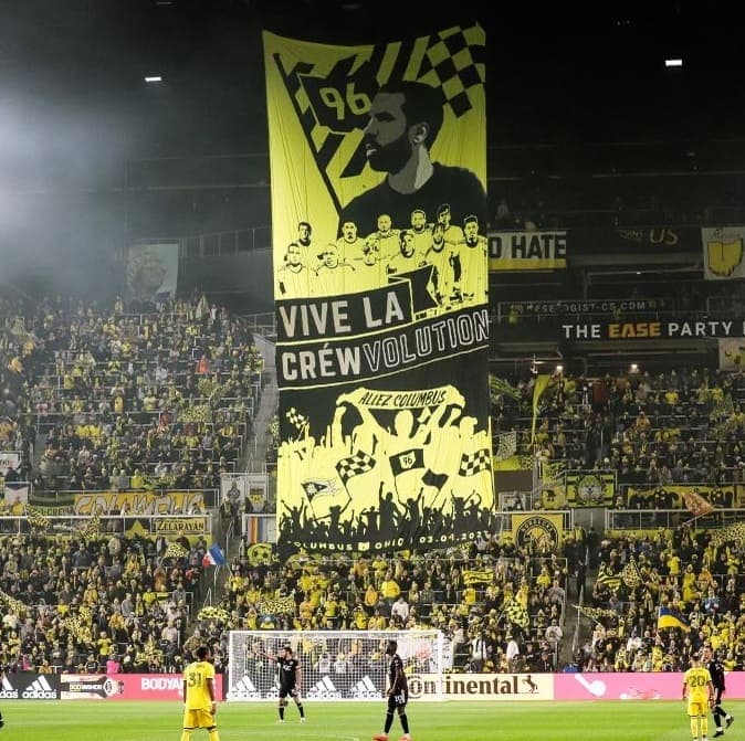 On pouvait lire sur celle-ci «Vive la Créwvolution» et aussi voir un partisan tenir une écharpe «Allez Columbus». Les partisans du Crew ont vraiment embrassé les origines françaises de Nancy.