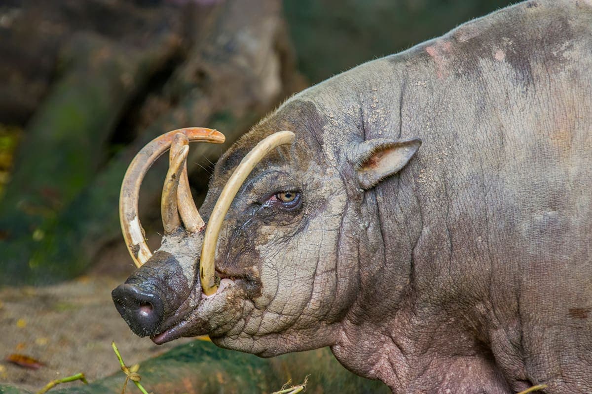 Babiroussas Son nom signifie «cochon-chevreuil» en malais. On le retrouve en Indonésie au cœur des jungles de l’île de Sulawesi, ainsi que sur les îles Bourou et de Malado.