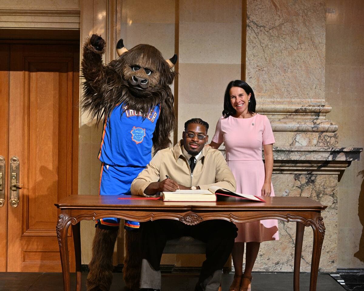 L’hôtel de ville de Montréal avait des allures de grand carnaval pour Luguentz Dort, champion de la NBA, mercredi, puisque le célèbre joueur de basketball a été invité à signer le livre d’or.