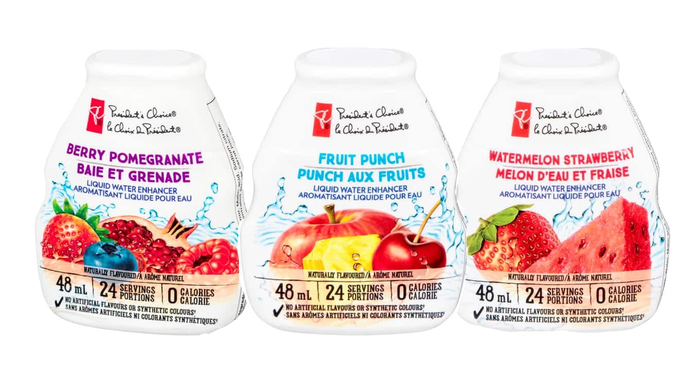 Le Choix du Président offre des aromatisants d’une panoplie de saveurs. Ils contiennent des arômes naturels, du jus concentré pour la couleur et de l’arôme naturel. Il contient de l’extrait de stévia comme édulcorant.