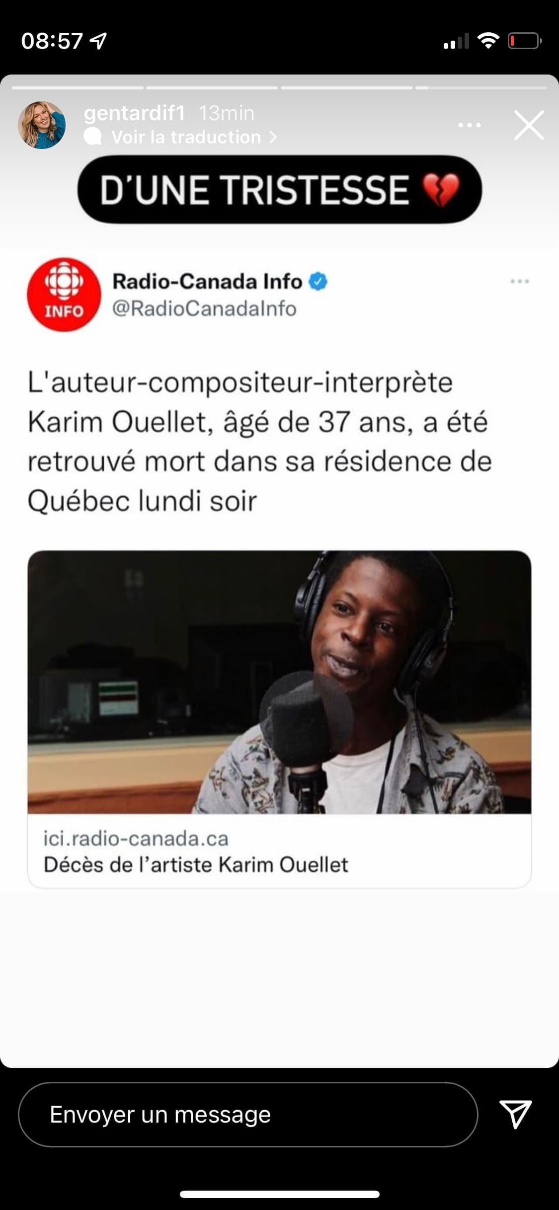 • À lire aussi: Le chanteur Karim Ouellet est décédé à l'âge de 37 ans