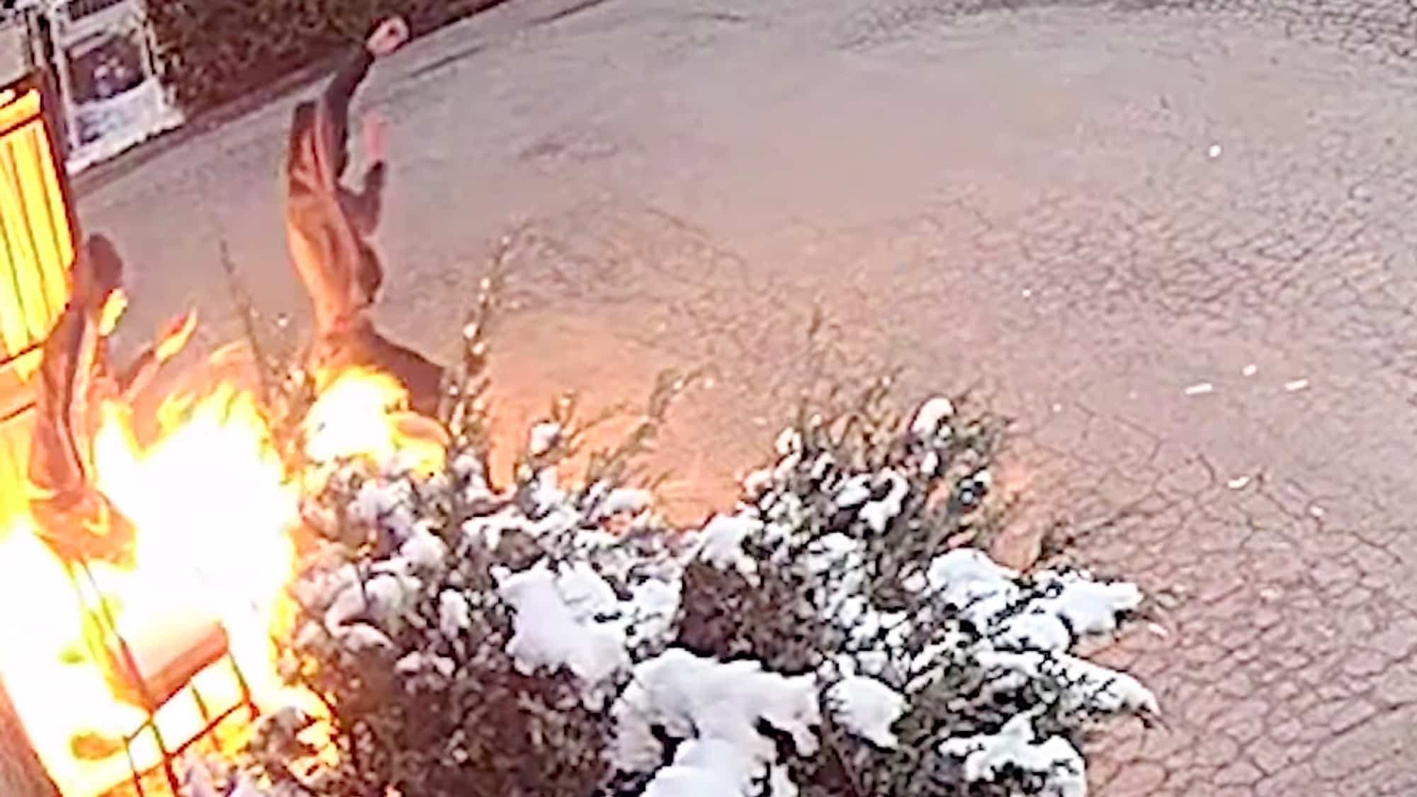 Après avoir fracassé la porte vitrée d’un commerce en y lançant ce qui semble être une roche, les deux jeunes cagoulés ont entrepris d’y verser une bonne quantité d’essence. Mais c’est en allumant les flammes qu’ils ont passé proches de se blesser gravement, à cause de l’explosion. Ils ont réussi de justesse à prendre leurs jambes à leur cou, évitant le pire. À ne pas faire.