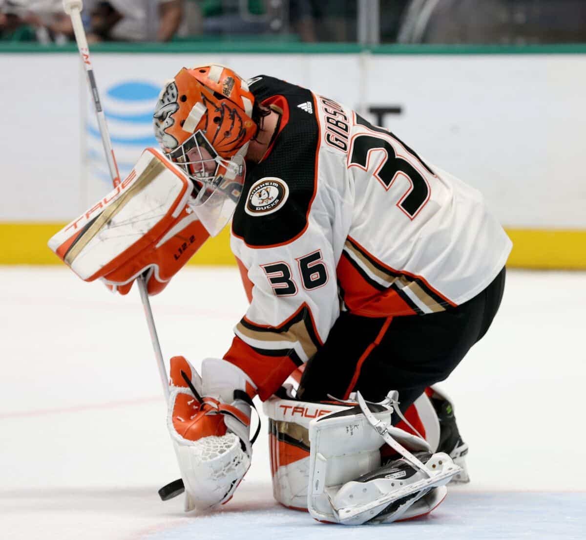 Gibson a été un choix de deuxième tour (39e au total) des Ducks au repêchage de 2011. Cette saison, il a maintenu un dossier de 18-26-11, un taux d’efficacité de ,904 et une moyenne de buts alloués de 3,19 en 56 parties.