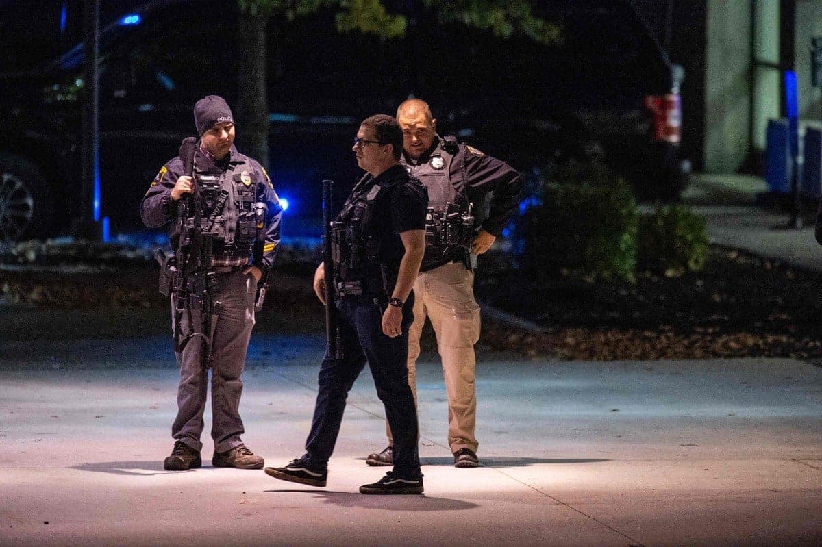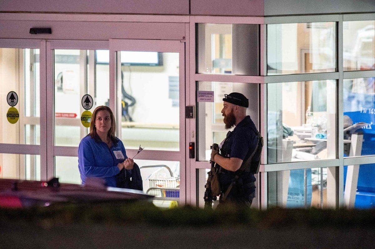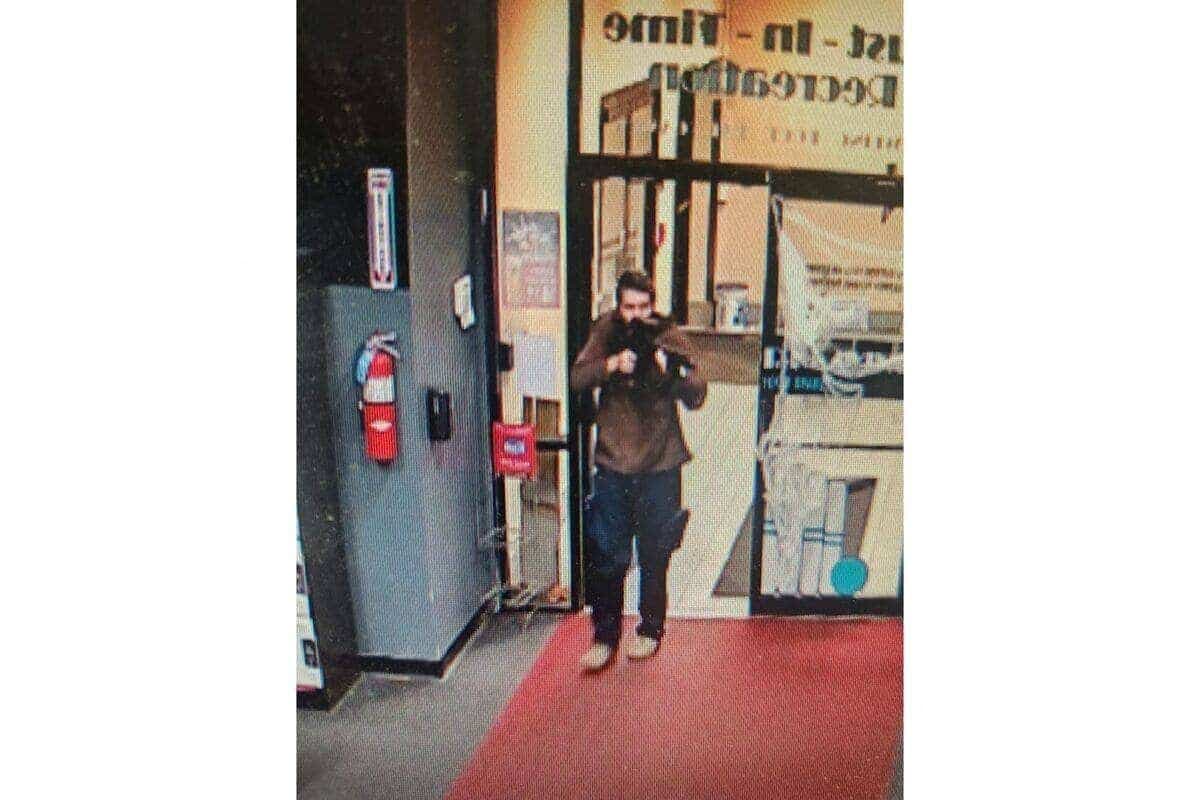 La police a diffusé les photos d'un tireur, brandissant son arme, un fusil semi-automatique, devant des portes vitrées de l'établissement.