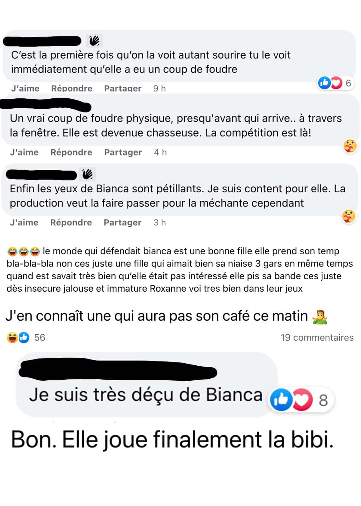 Question de grande rigueur journalistique, précisons que certains sont encore team Bianca dans tout ça. Ils expliquent que Jacob n'est pas un ange lui non plus, et qu'il a entre autres dit à Roxane qu'elle était son deuxième choix SANS LE DIRE À BIANCA.