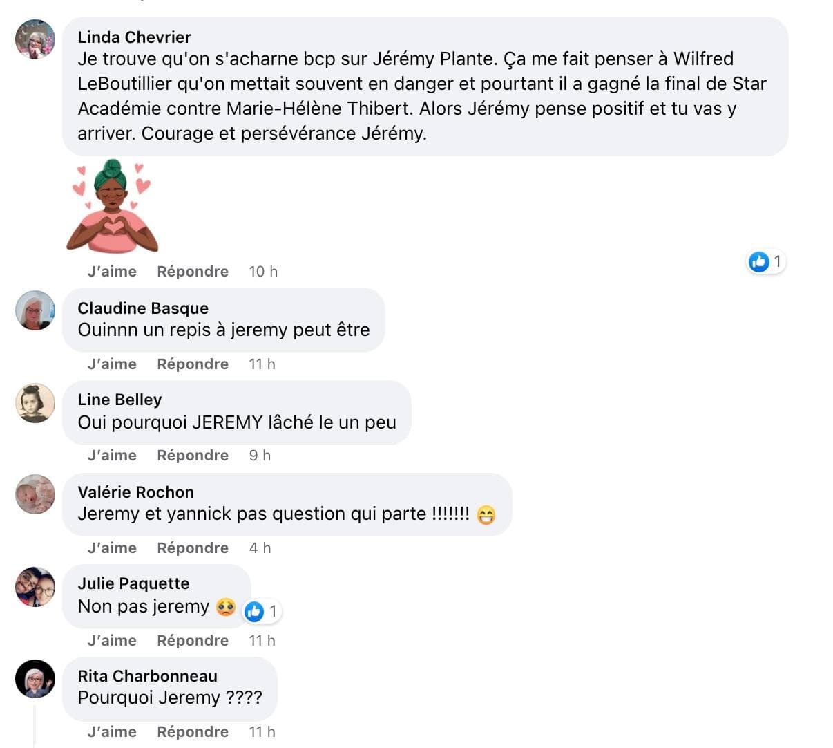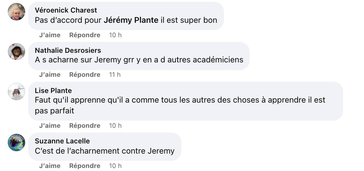 Dans la quotidienne de mardi soir, on a pu voir un Jérémy mécontent du choix des professeurs. «Entre moi qui mâche un peu ses mots et une fille qui ne dit pas les bons mots ou qui a un méga accent, je ne sais pas pourquoi c’est moi qui suis en danger», a lancé le gars de Lévis à d’autres Académiciens.
