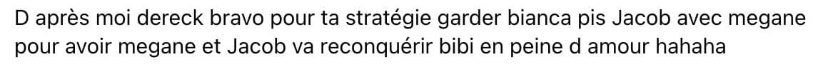 Ce choix fut surprenant considérant que durant la Casa Amor on n’a pas vu trop de rapprochements entre Jacob et la femme de 19 ans. C’est plutôt envers Derek que cette dernière avait des intérêts.