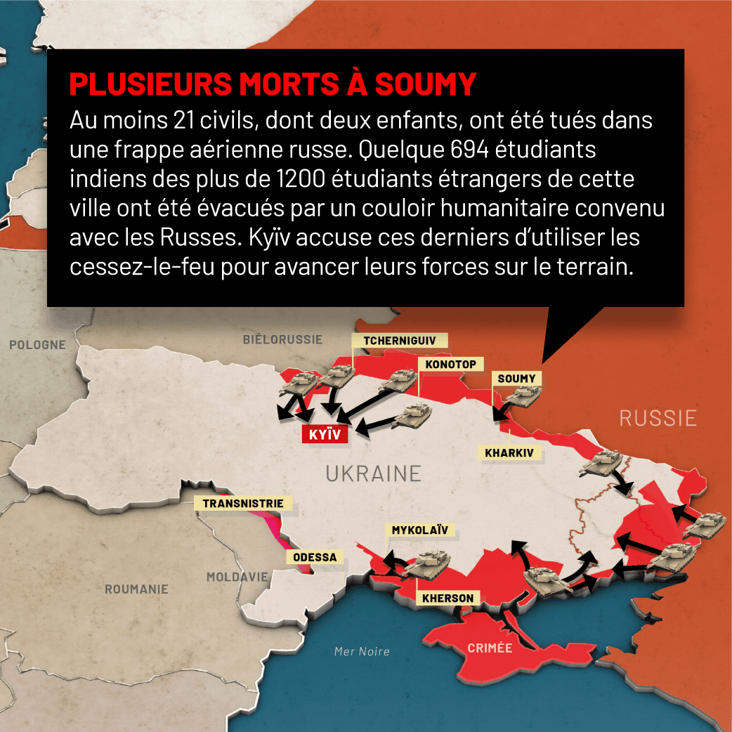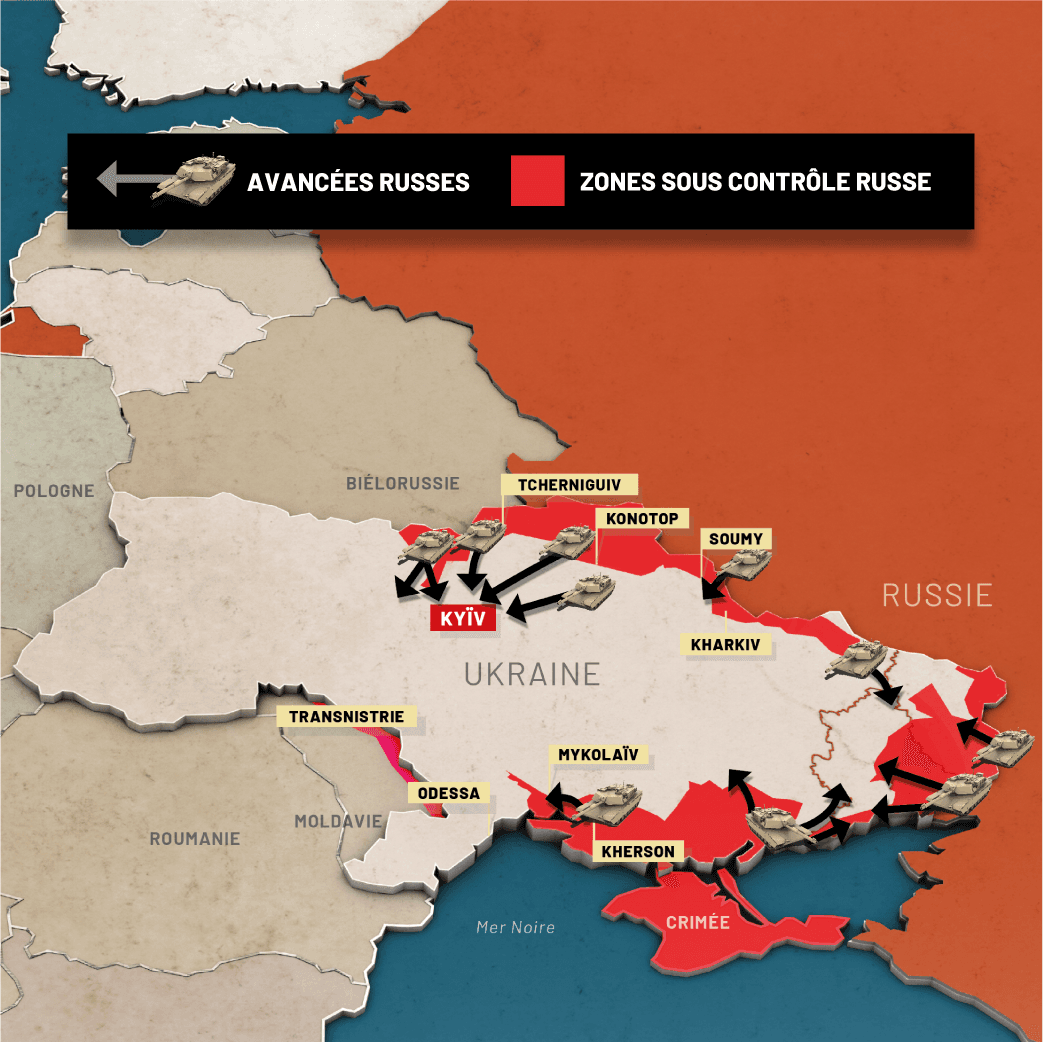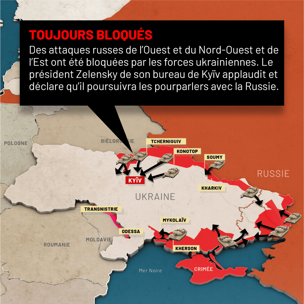 Les forces russes rassemblées autour de Kyïv se préparent à une attaque sur plusieurs fronts contre la capitale toujours aux mains des forces ukrainiennes.