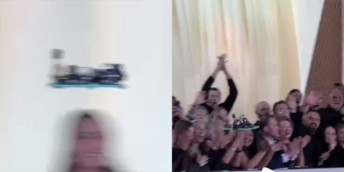 Dans un court extrait vidéo, on peut voir le drone se promener sous une pluie d'applaudissements.