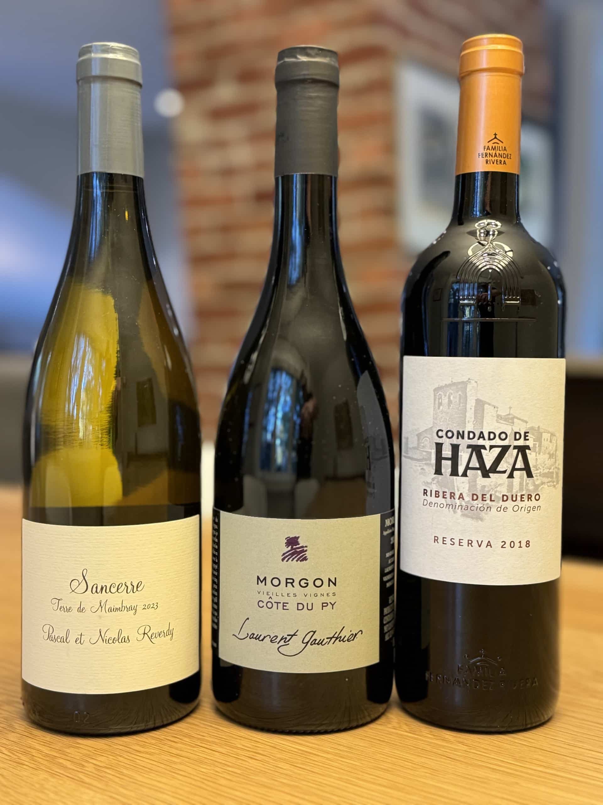 Cette fin de semaine, on se fait plaisir avec un sancerre frais et salin, un morgon fruité et charnu, et un ribera del duero ample et structuré.