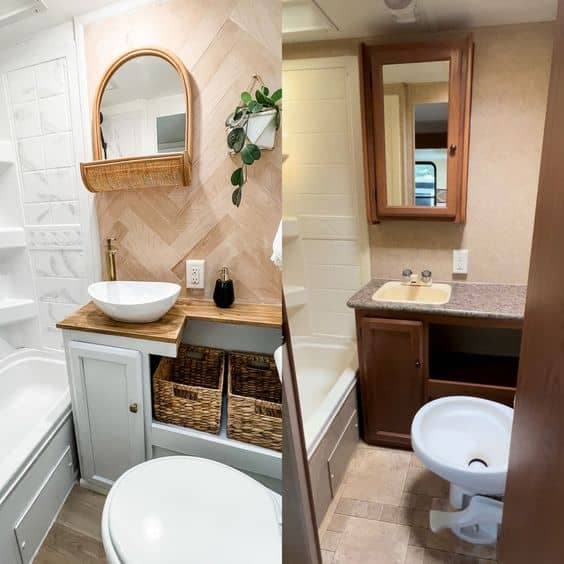 Dites au revoir au préfini et aposez un joli dosseret autocollant sur le dosseret de la cuisine. Ce simple ajout rehaussera le look général de la roulotte et vous donnera envie de cuisiner les meillleures recettes à cuisiner en camping.
