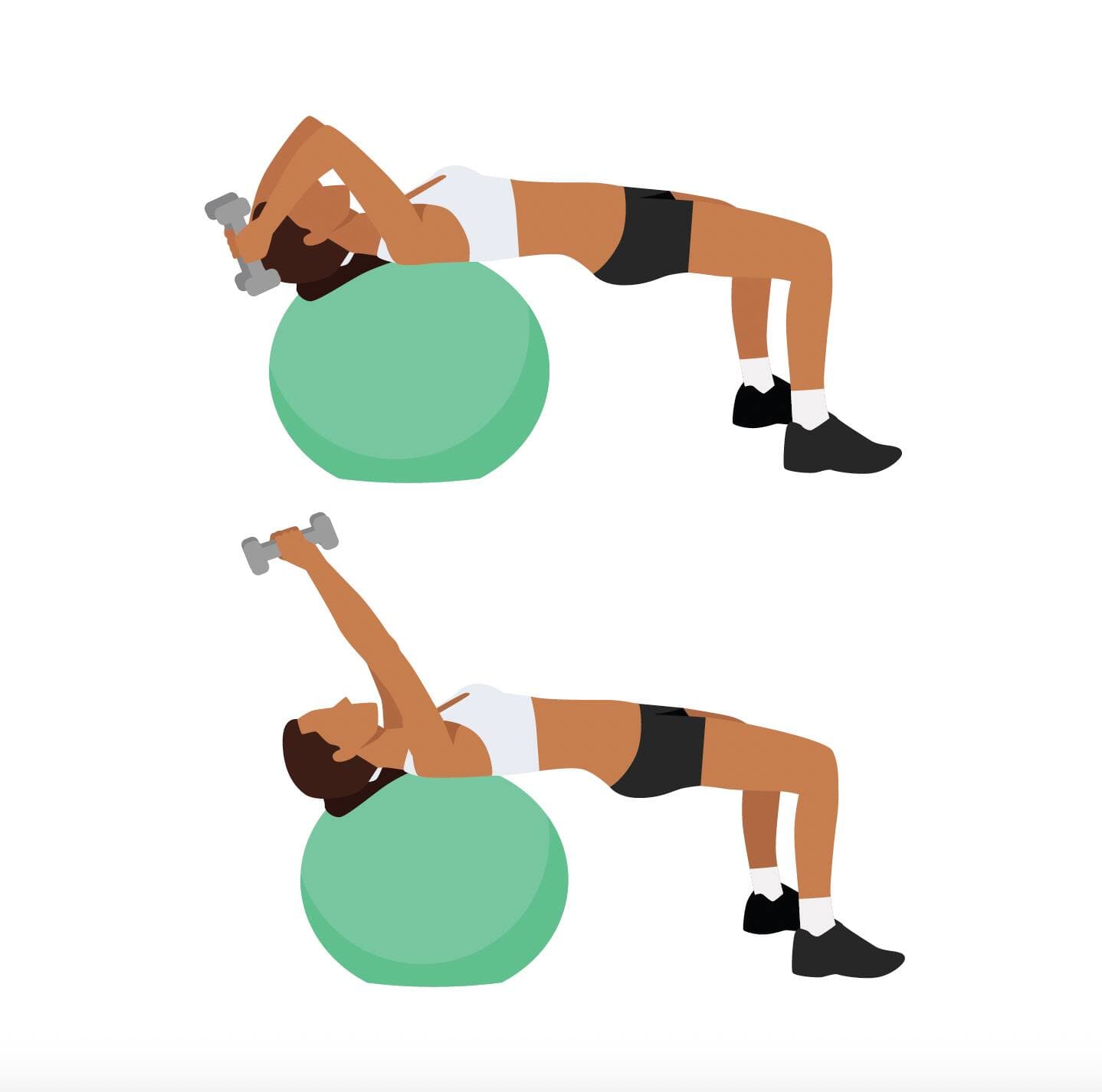 Comment faire un Overhead Triceps Extensions? Stabilisez votre dos au sol, sur un tapis d'entraînement, ou sur un ballon d'entraînement. Haltères en mains, placez les bras à 90 degrés au-dessus de la tête et faites une extension complète.